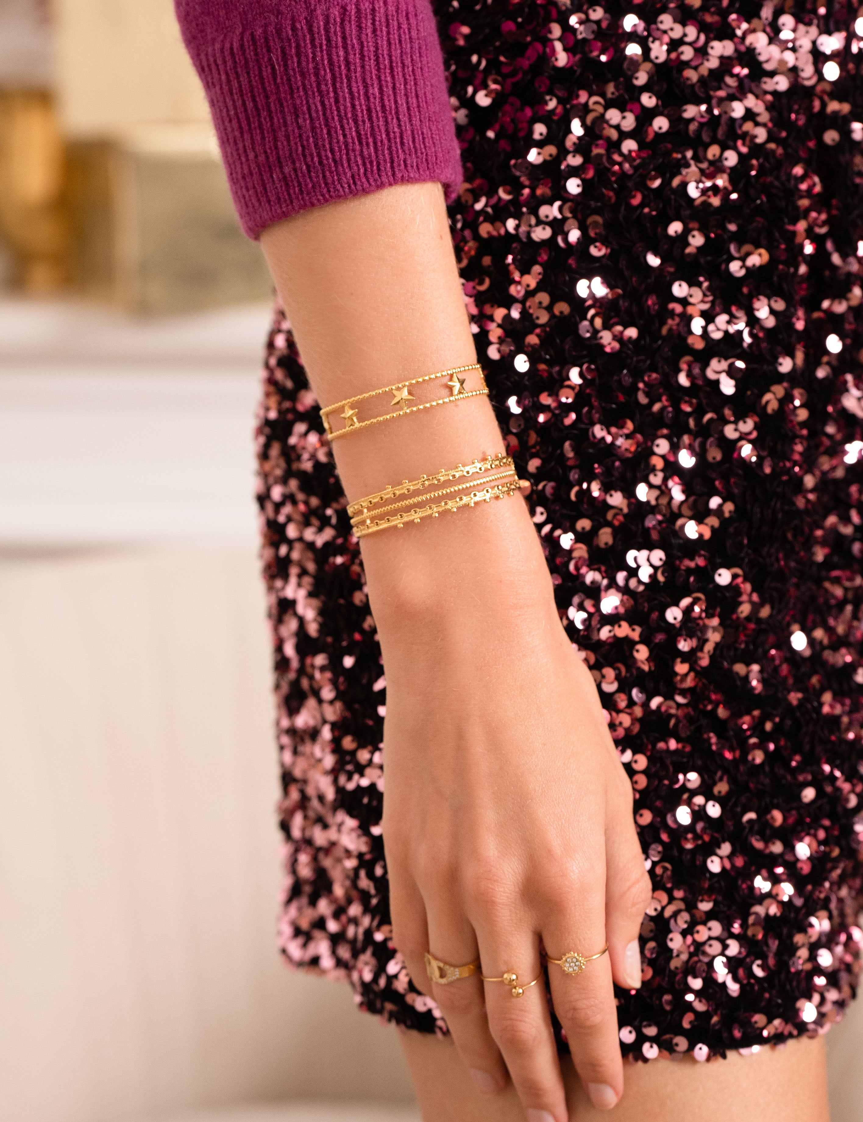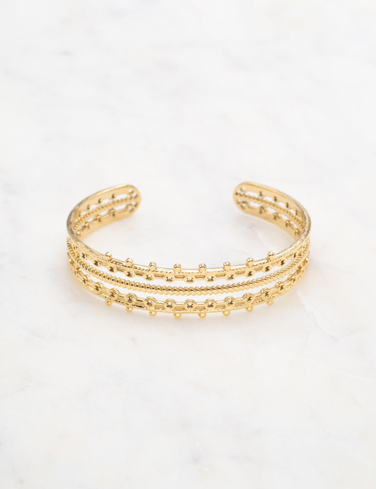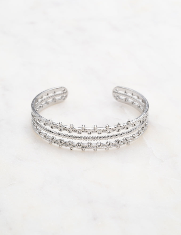 Bracelet type jonc malléable graphique multirangs ajouré.