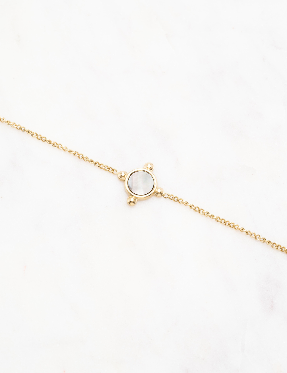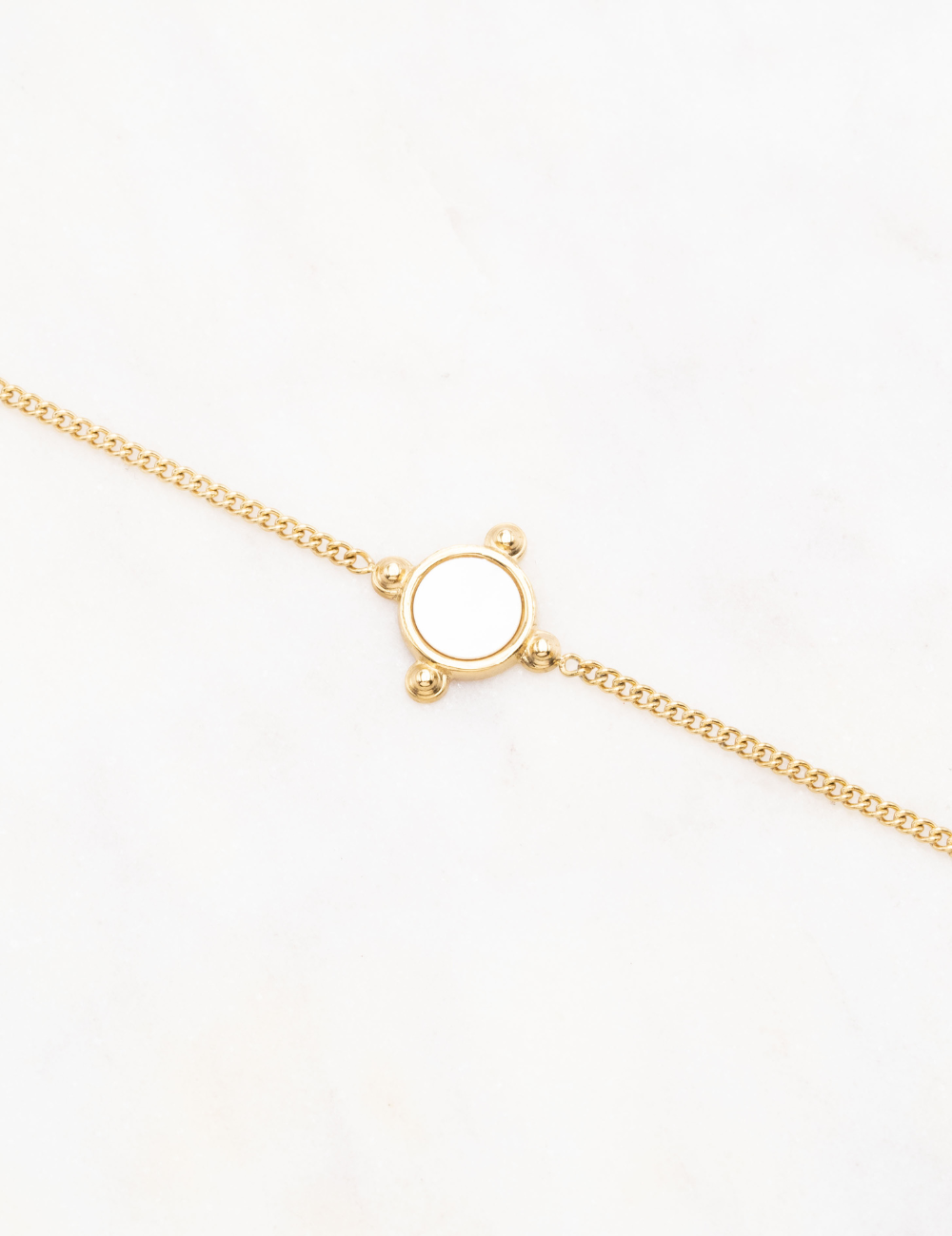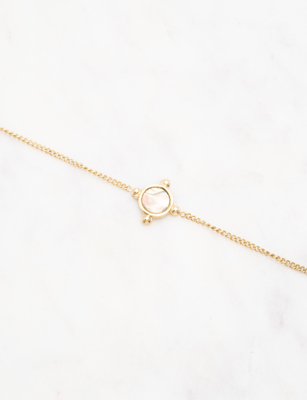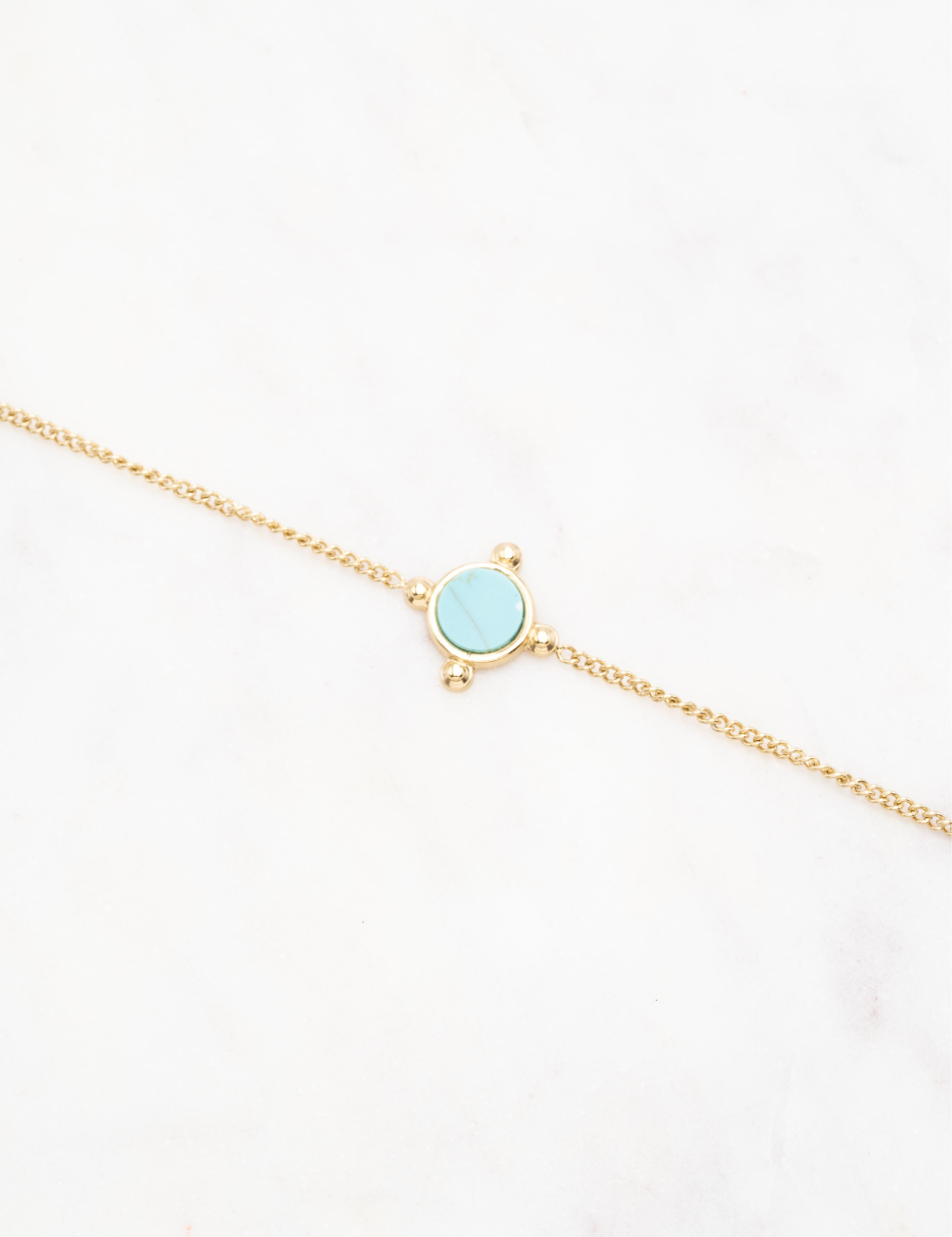 Bracelet sur chaîne composé d'une pièce sertie d'une pierre naturelle .