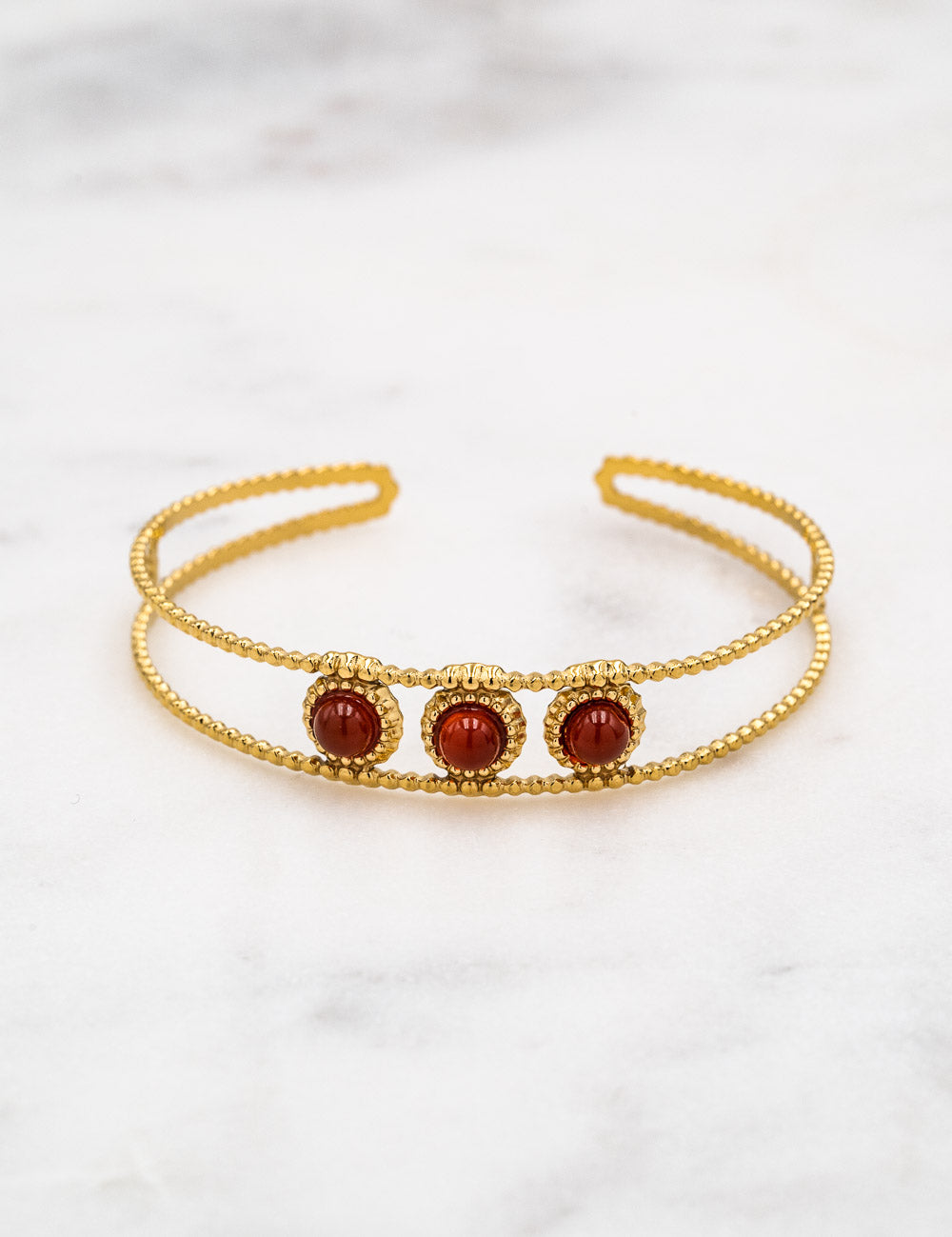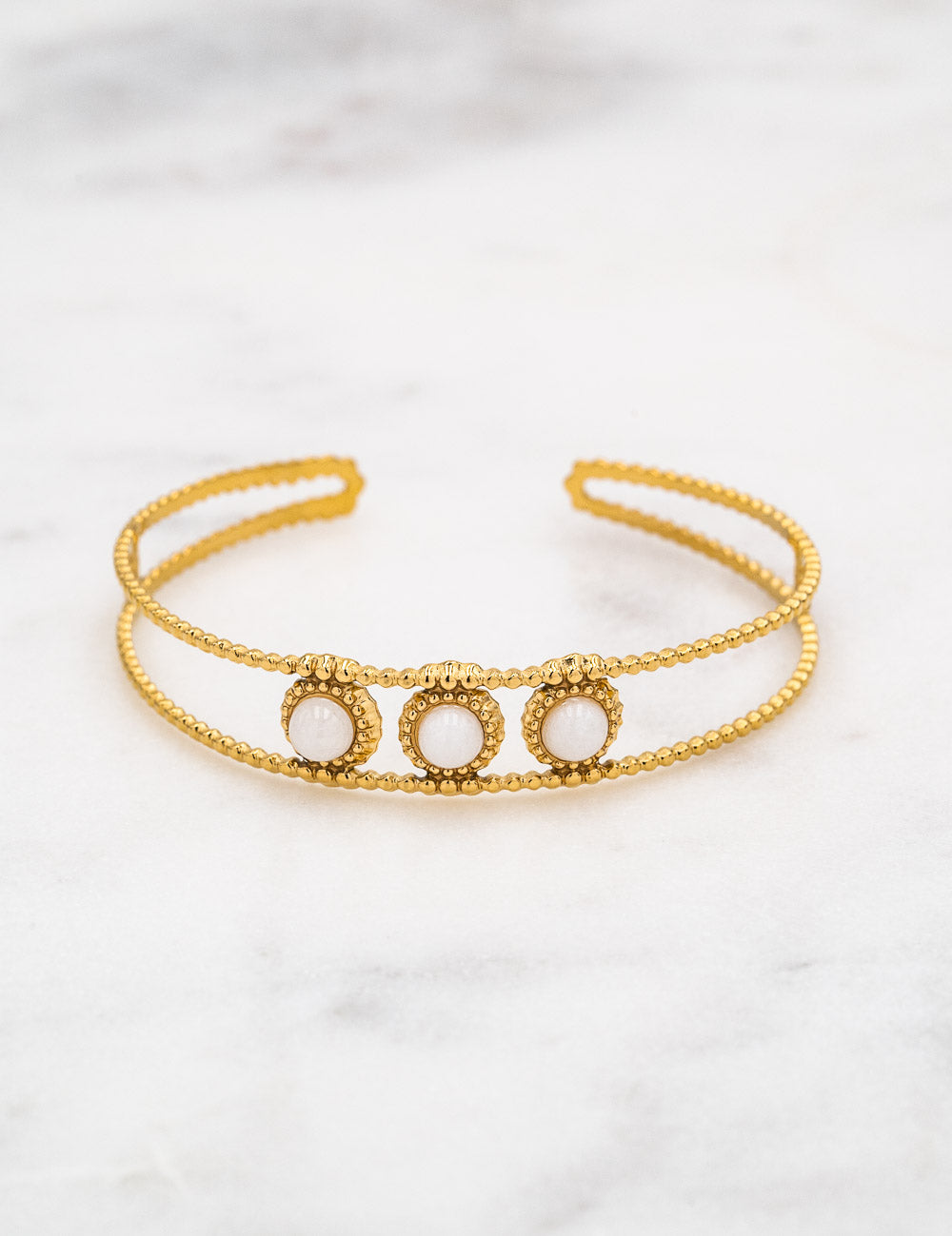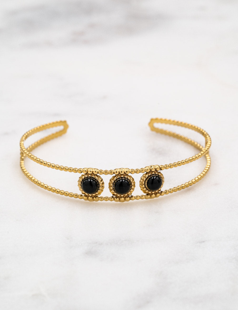 Bracelet de type jonc ajustable avec 3 petites pierres naturelles.