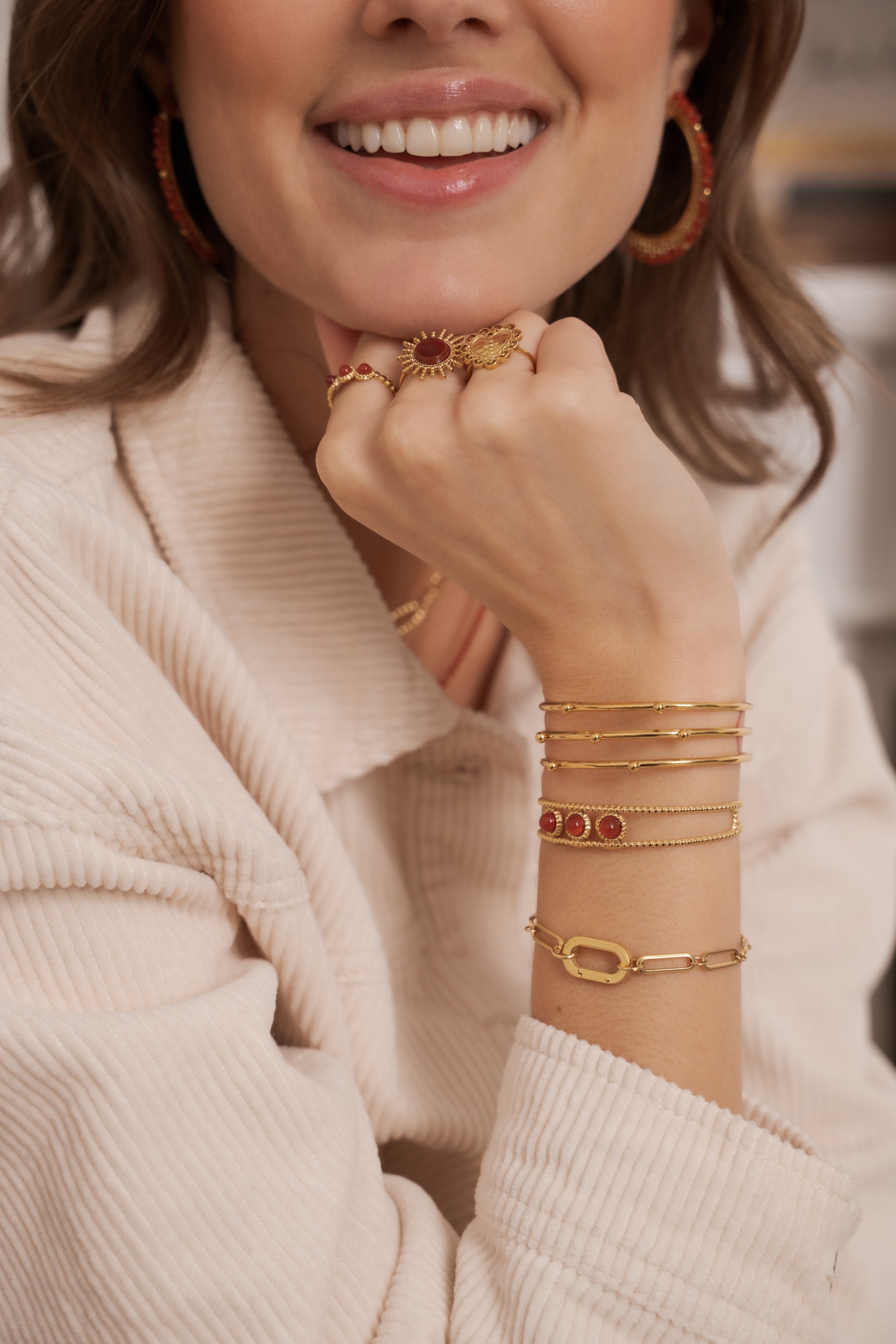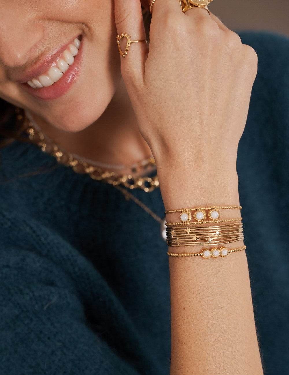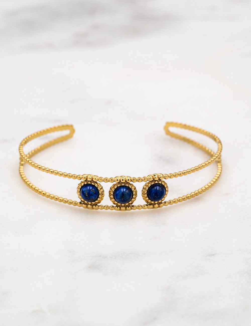 Bracelet de type jonc ajustable avec 3 petites pierres naturelles.