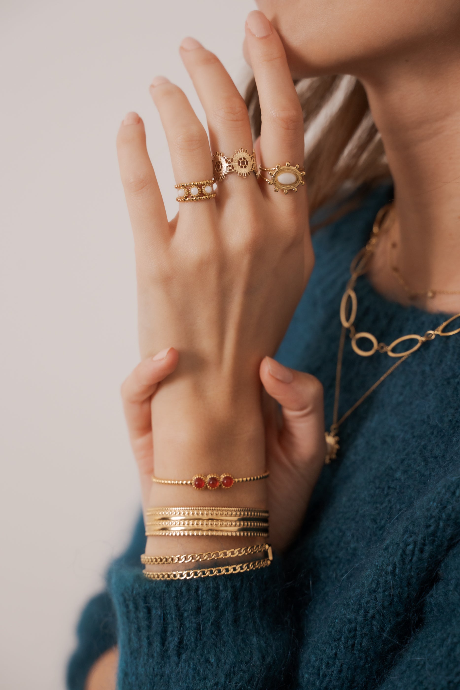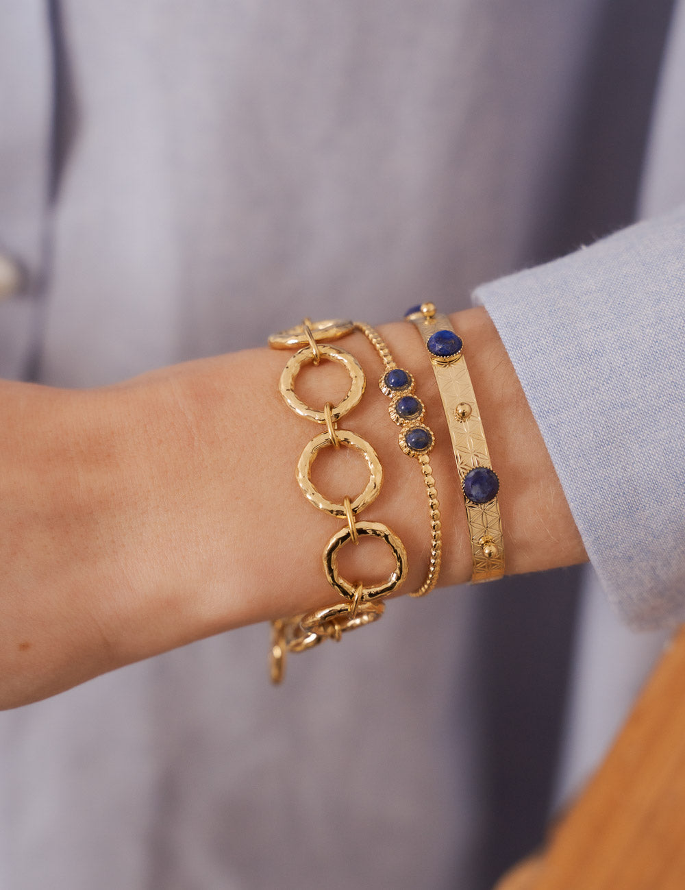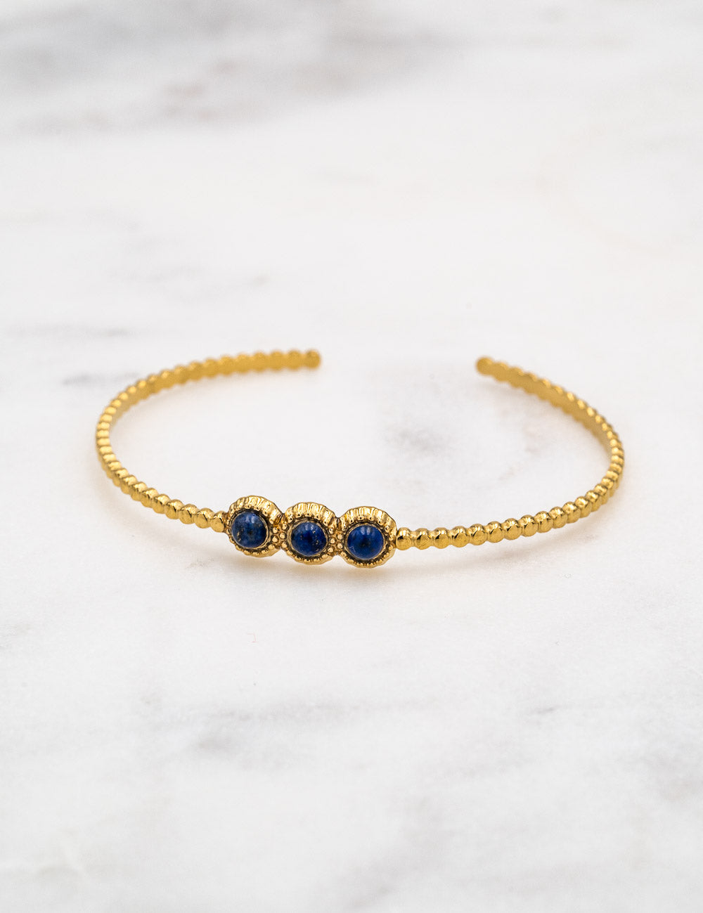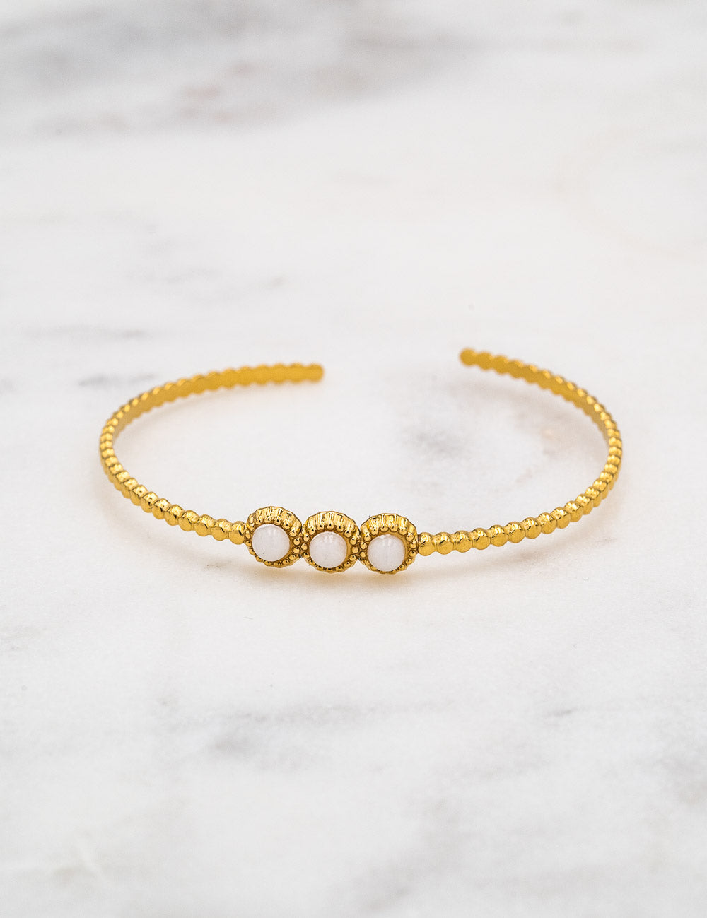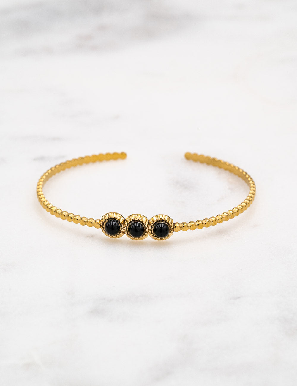 Bracelet de type jonc ajustable avec 3 petites pierres naturelles.