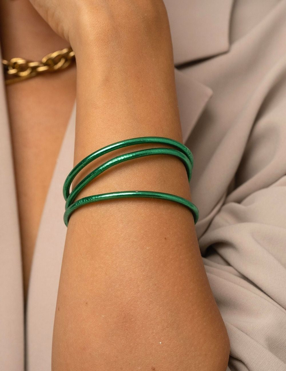 Chauffer légèrement les bracelets au sèche cheveux pour les détendre ou les passer sous l'eau chaude.