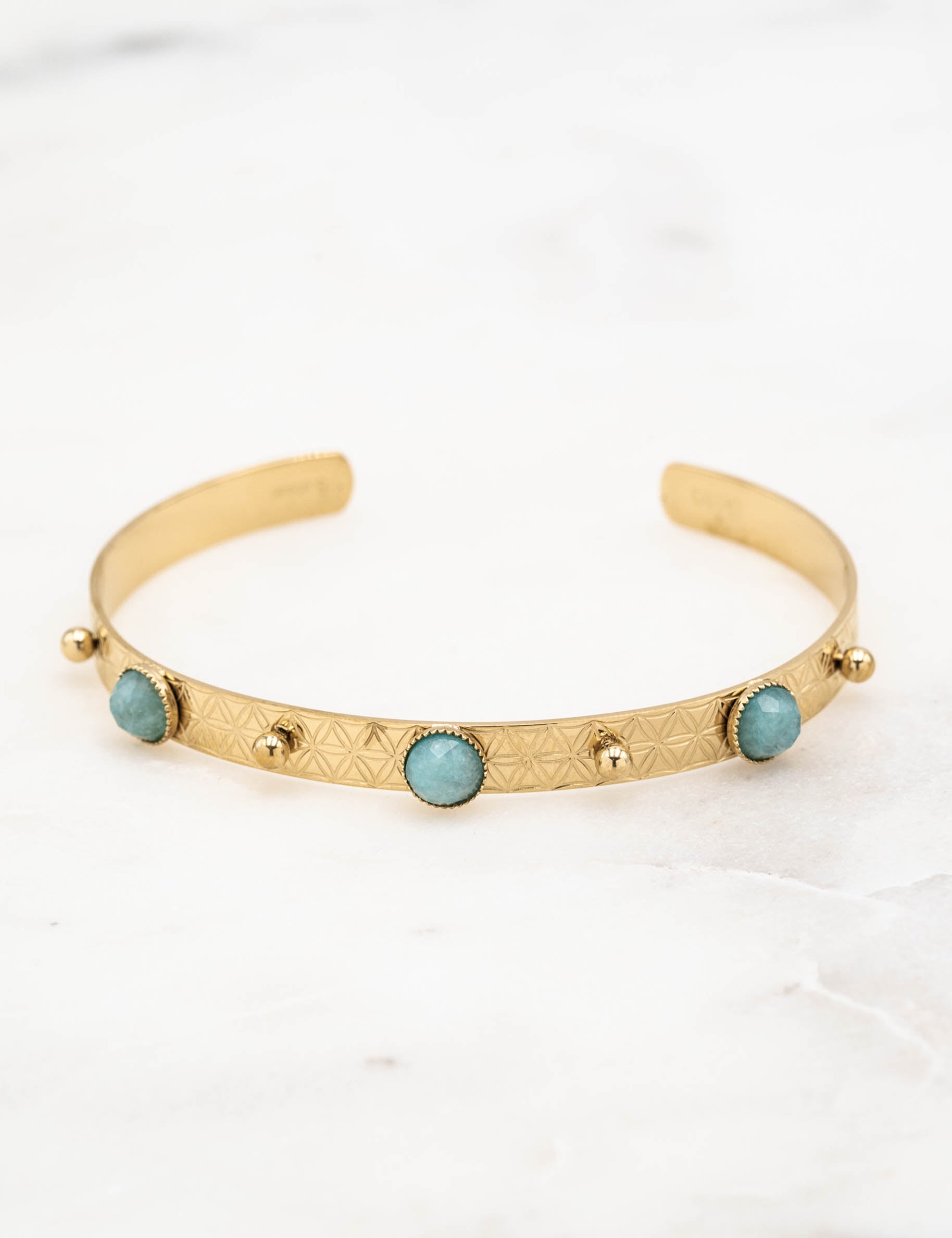 • Pierres naturelles: turquoise africaine, lapis lazuli, cornaline, amazonite, onyx, nacre blanche.