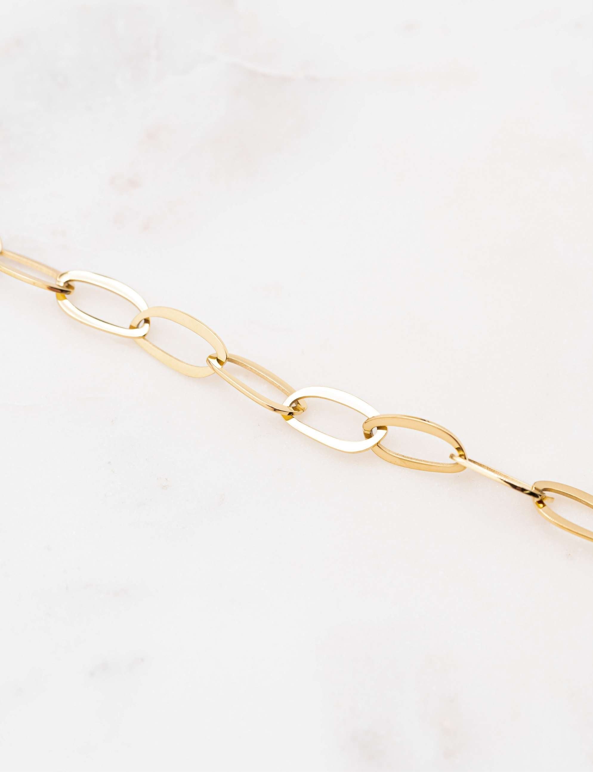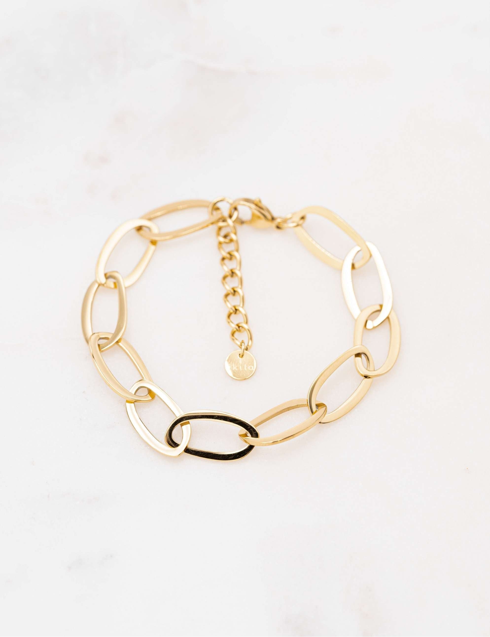 Bracelet sur chaine réglable à maillons. Fermoir mousqueton et chainette de réglage.