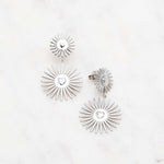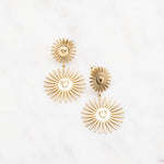 Boucles d'oreilles à puce composées de deux pièces soleils ornées chacunes d'un coeur.
