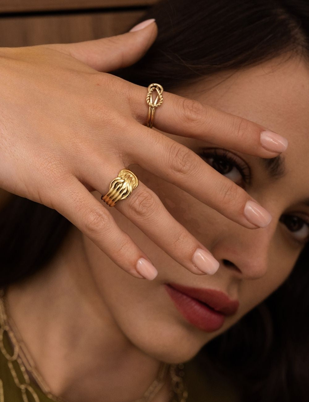 Bague graphique (noeud) ajustable avec un jeu de textures (lisse et torsadé)