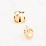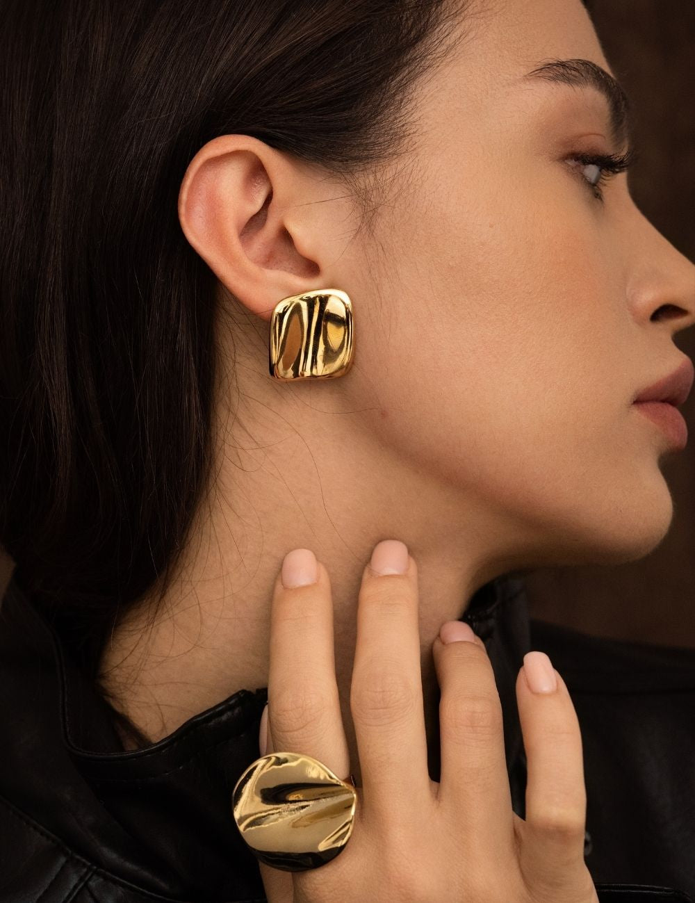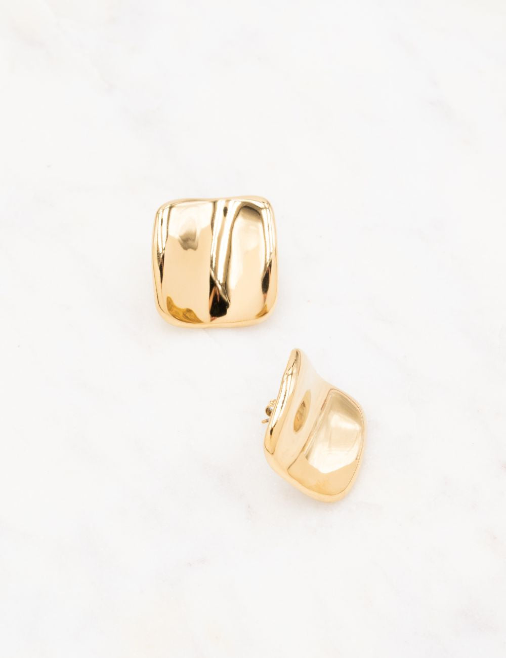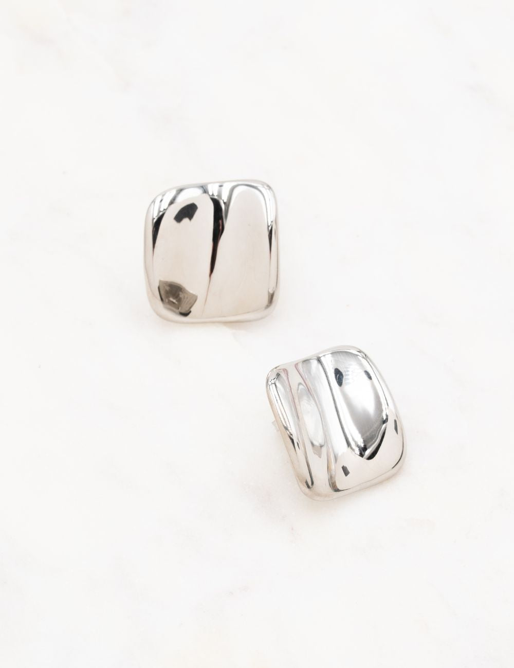 Boucles d'oreilles graphiques à puce composées d'une pièce géometrique lisse avec effet miroir.