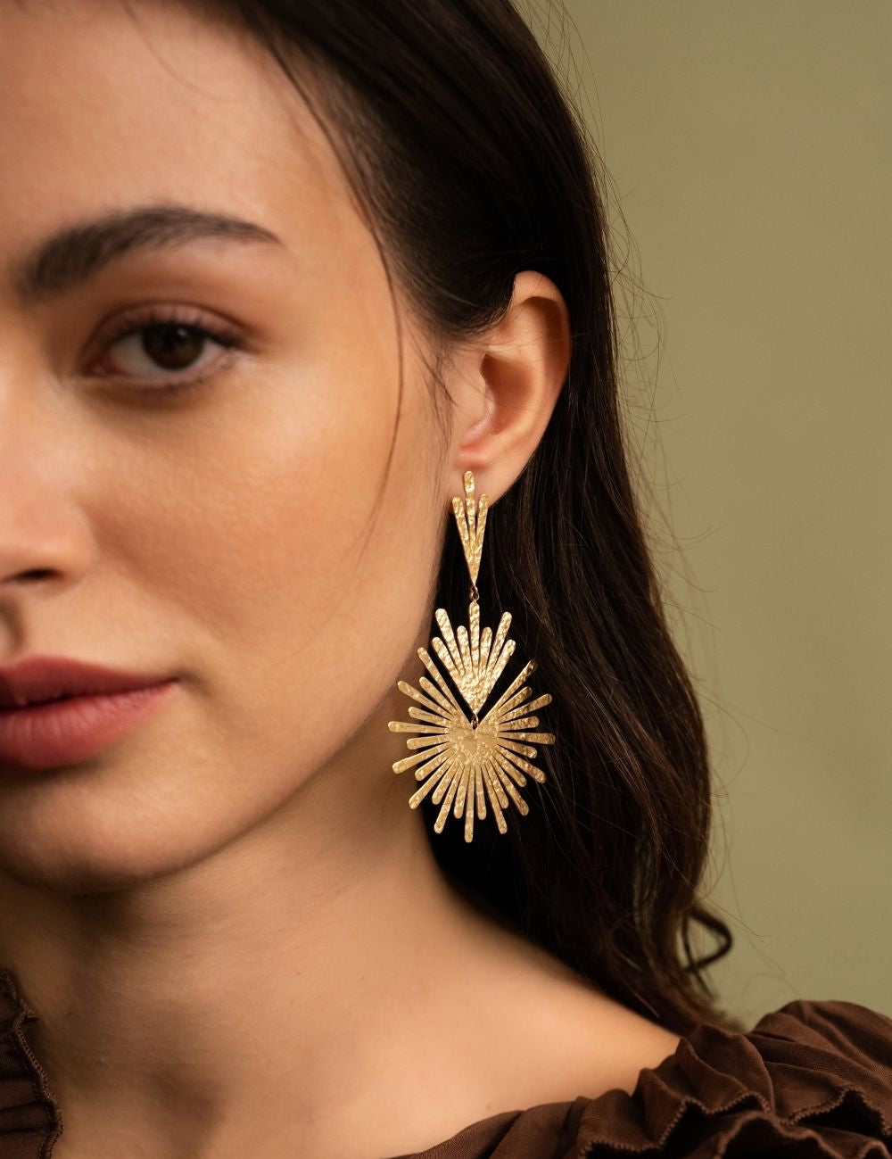 Boucles d'oreilles à puce composées de trois pièces graphiques martelées.