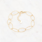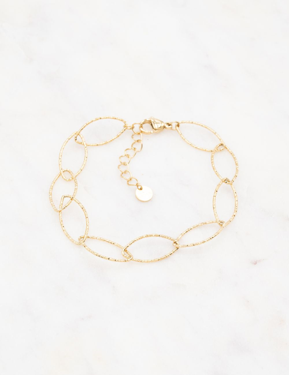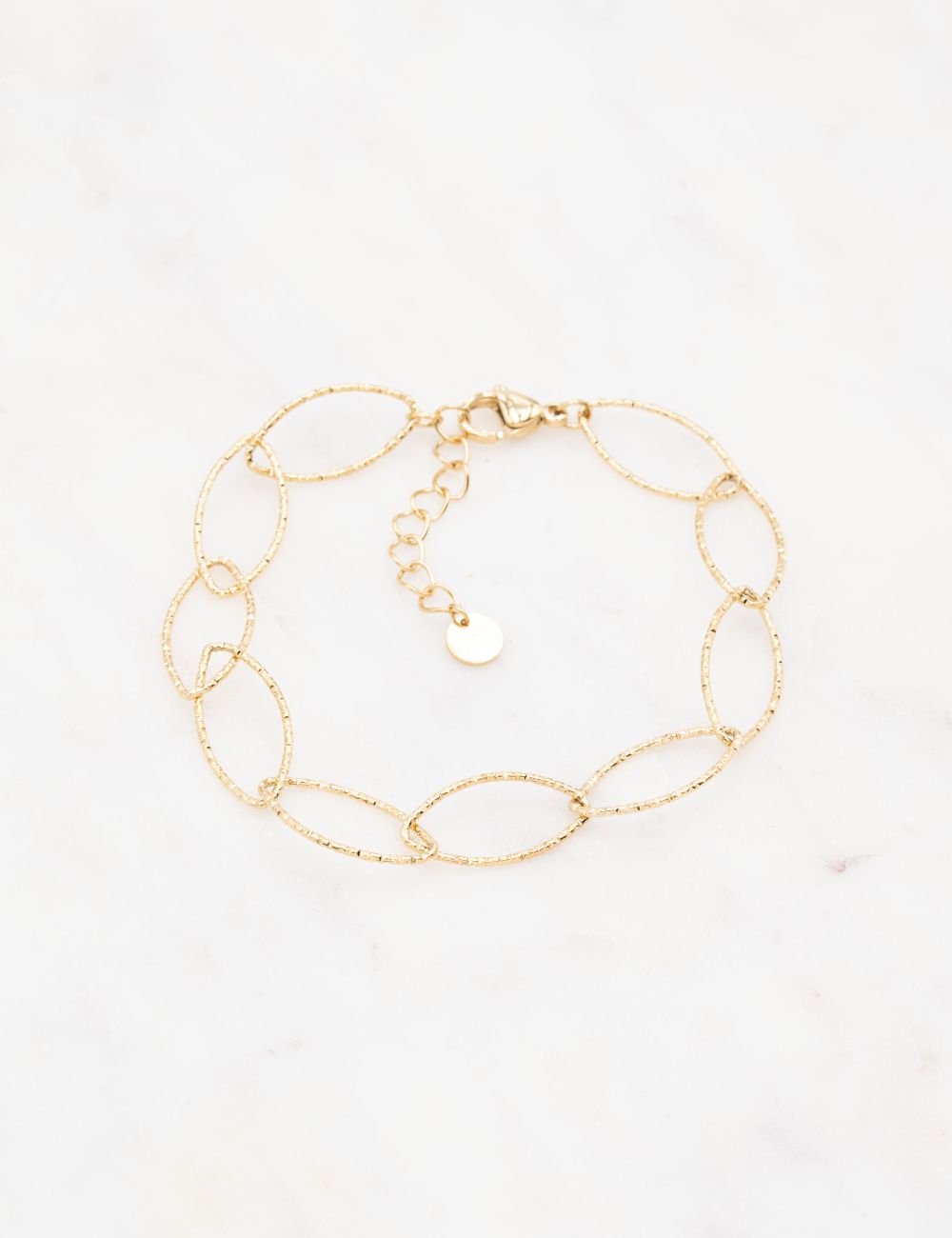 Bracelet réglable sur chaîne composé de maillons ovales texturés.