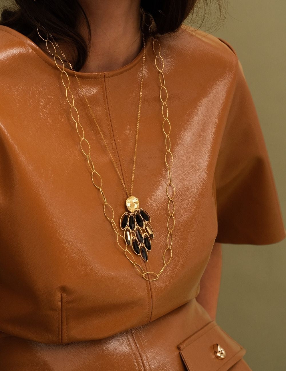 - Fermoir mousqueton et chaînette de réglage.