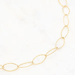 Collier réglable sur chaîne type sautoir composé de maillons ovales texturés.