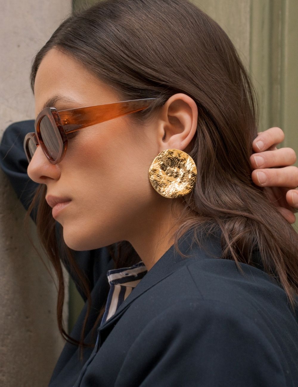 Boucles d'oreilles graphiques à puce composées d'une pièce martelée et reliefée.