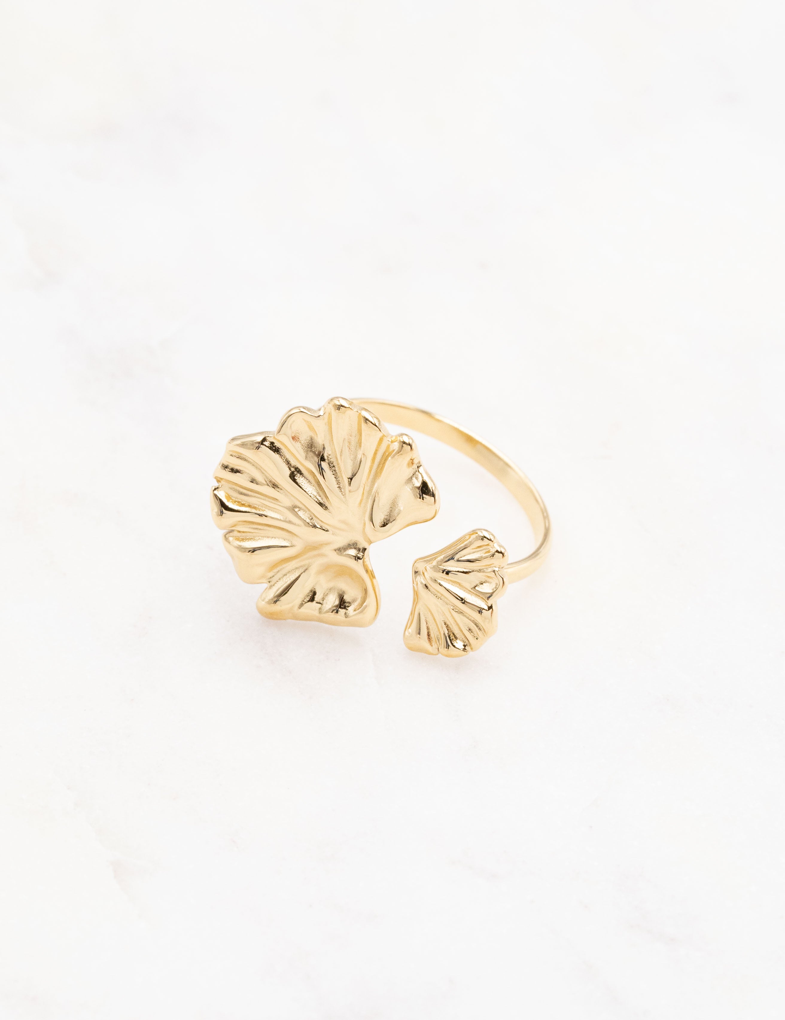 Bague fine ajustable composée de deux pièces au motif feuillage.