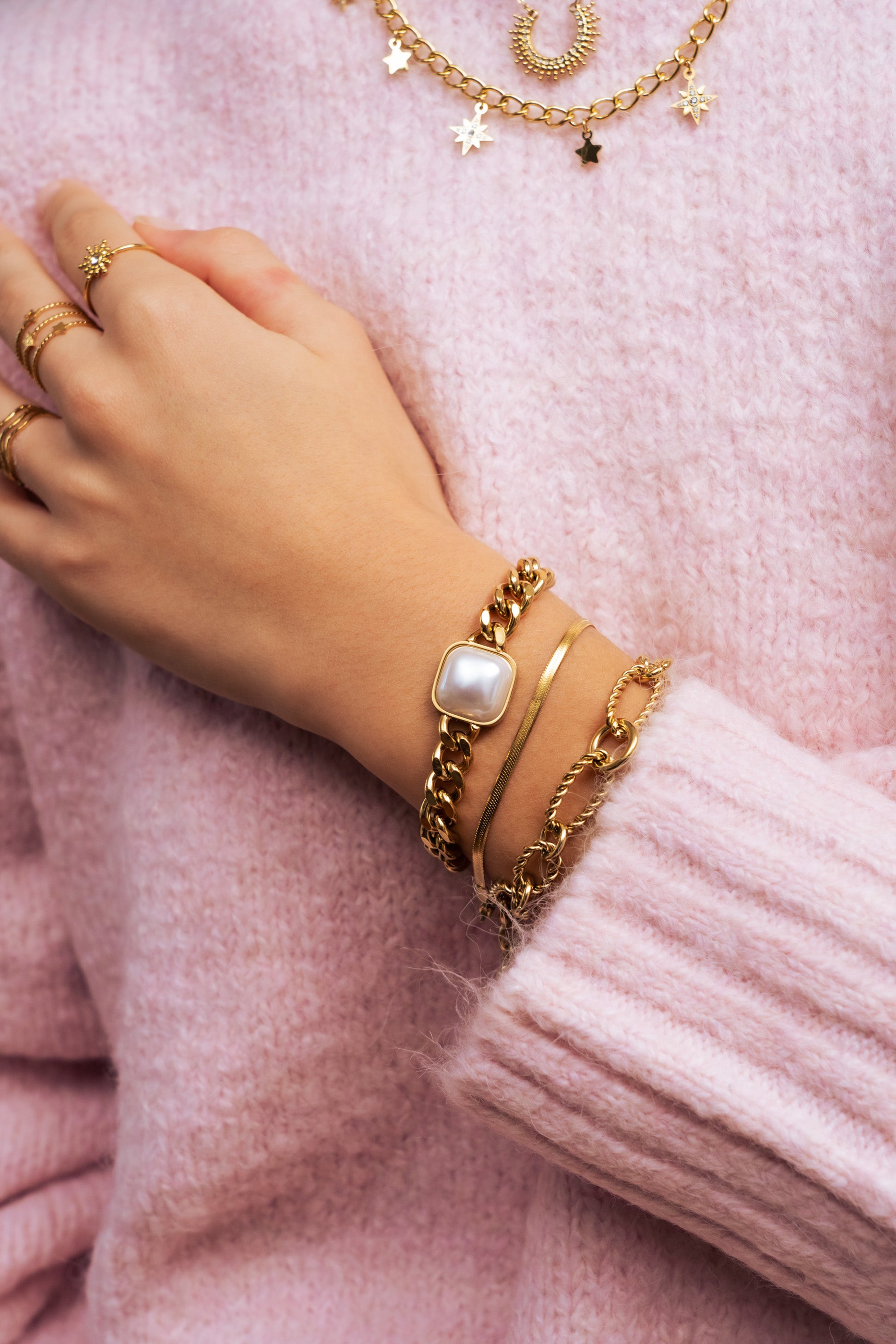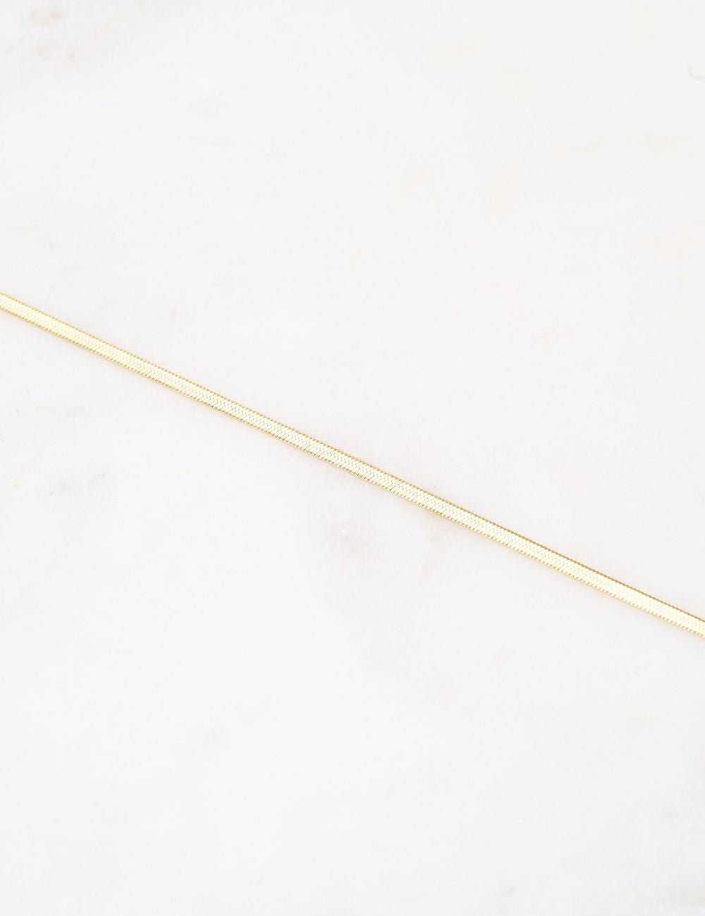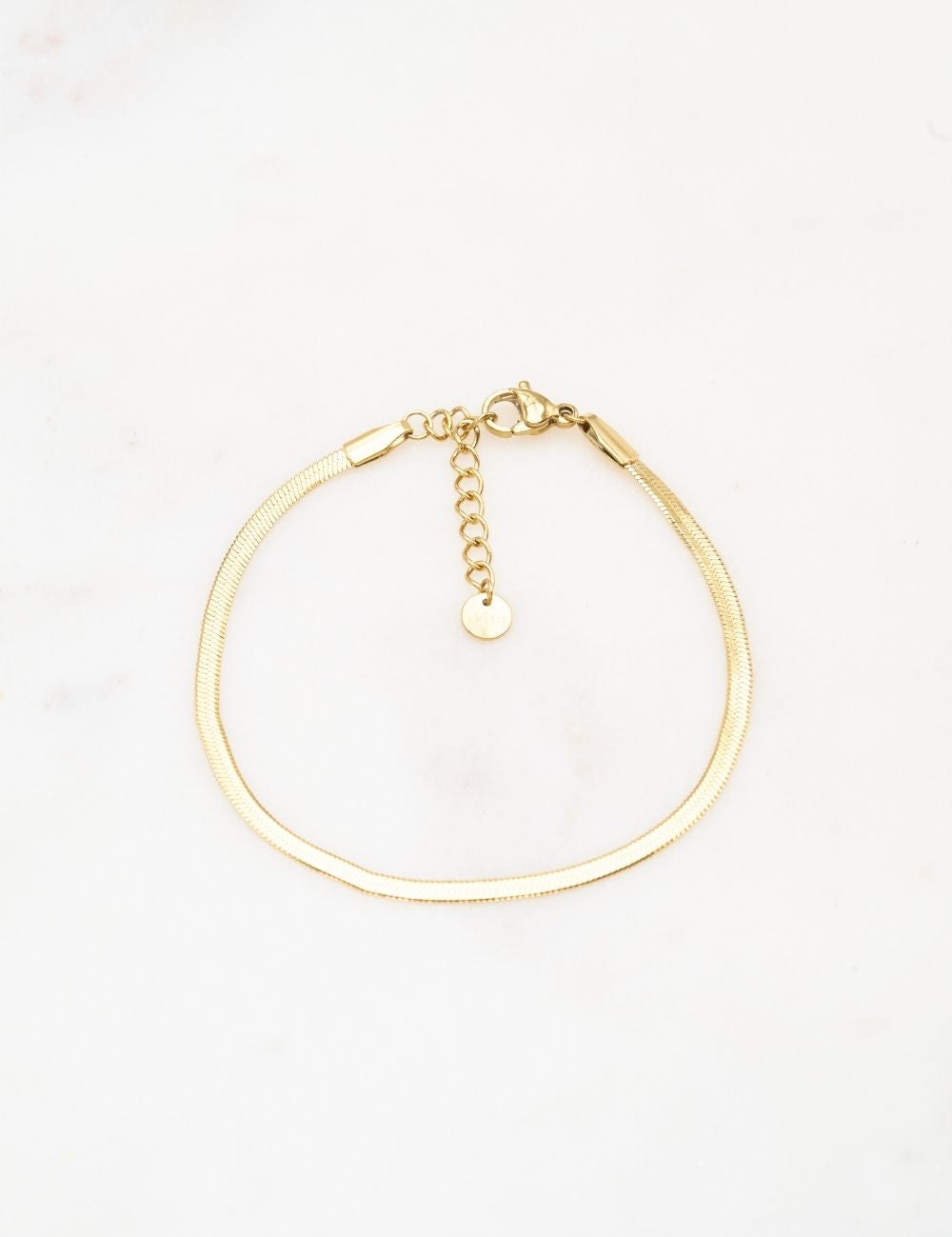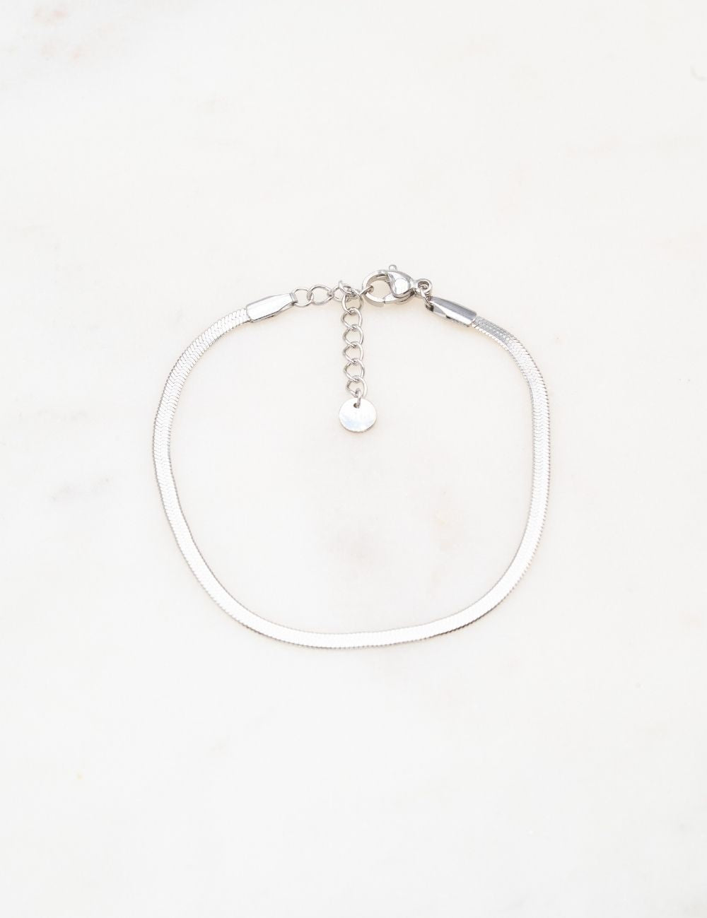 Bracelet sur chaine réglable composé d'une chaine maille plate. Fermoir mousqueton et chainette de réglage.