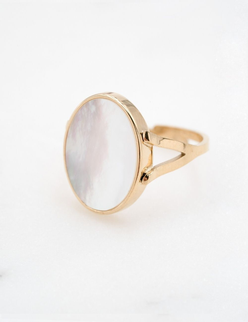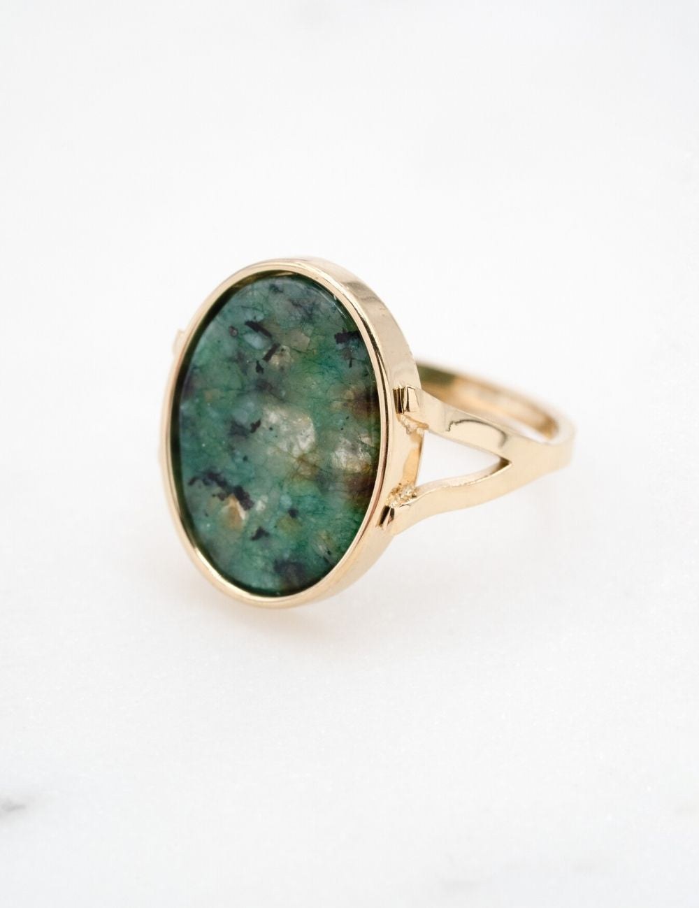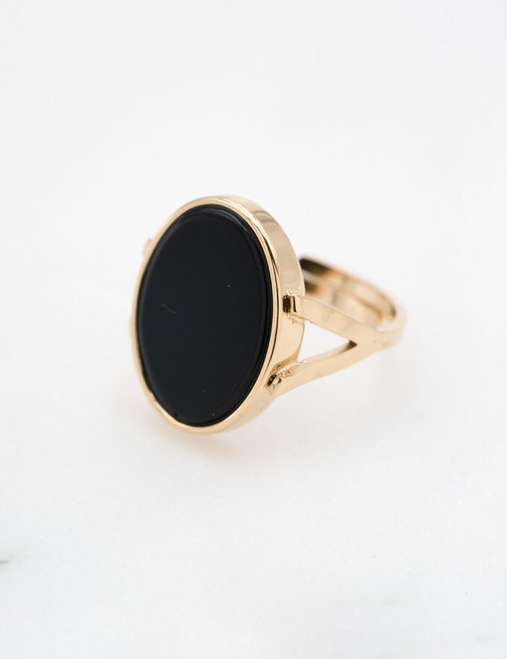 Bague ajustable de forme ovale composée d'une pièce en pierre naturelle.