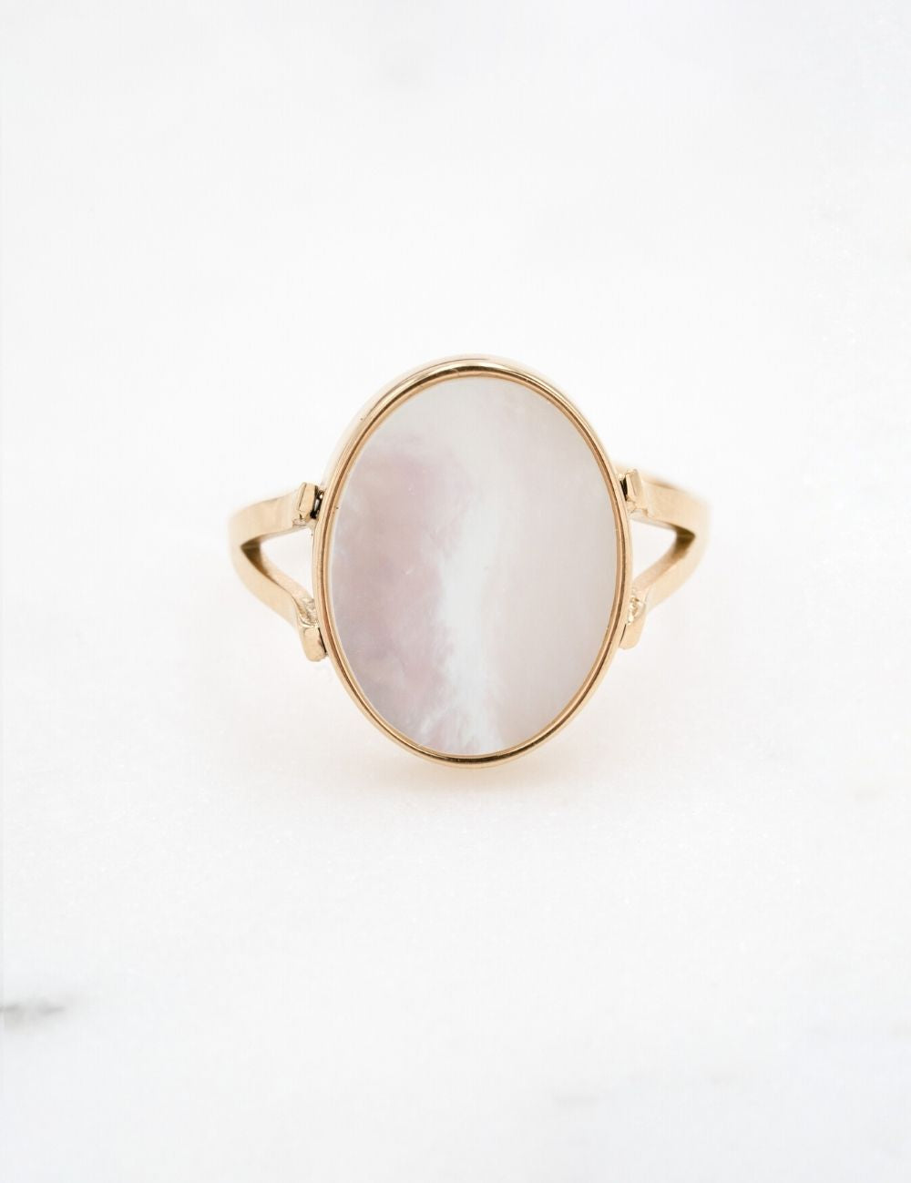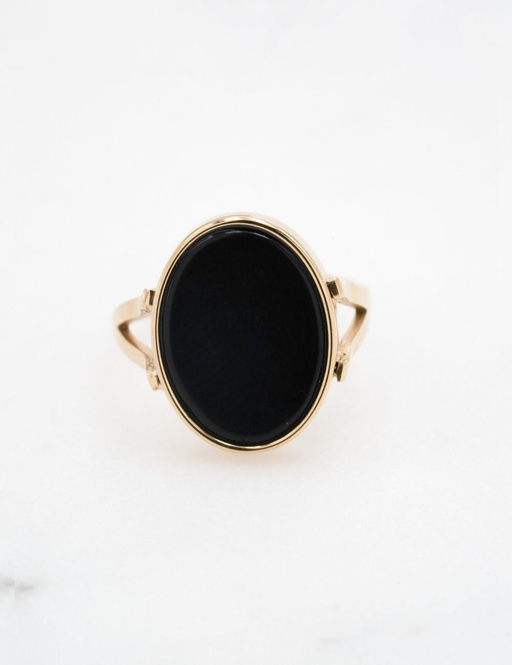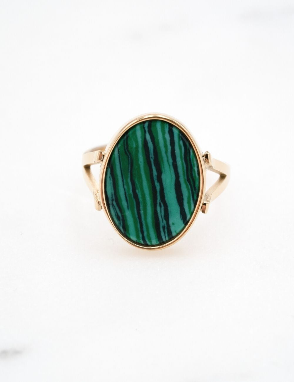Bague ajustable de forme ovale composée d'une pièce en pierre naturelle.