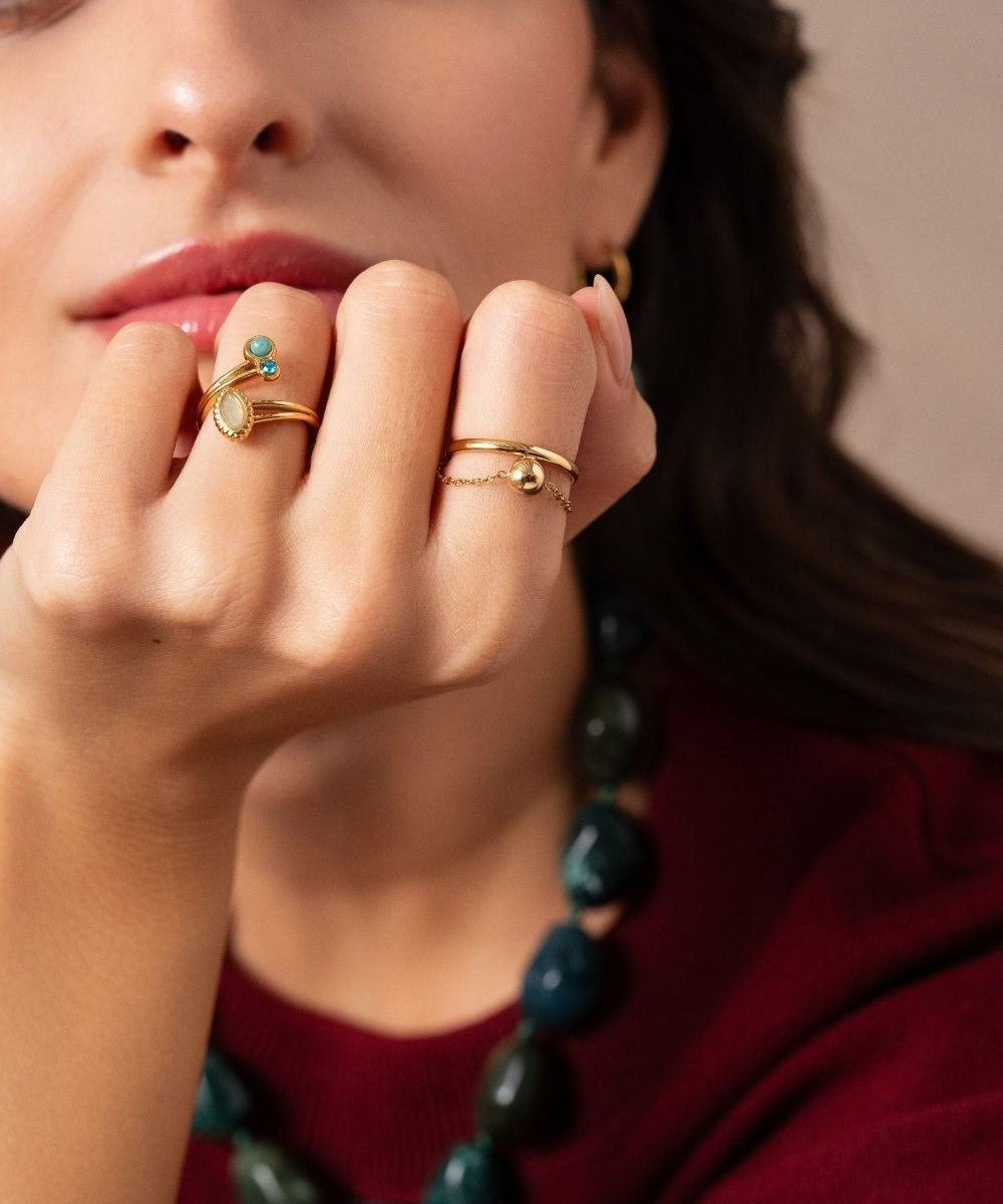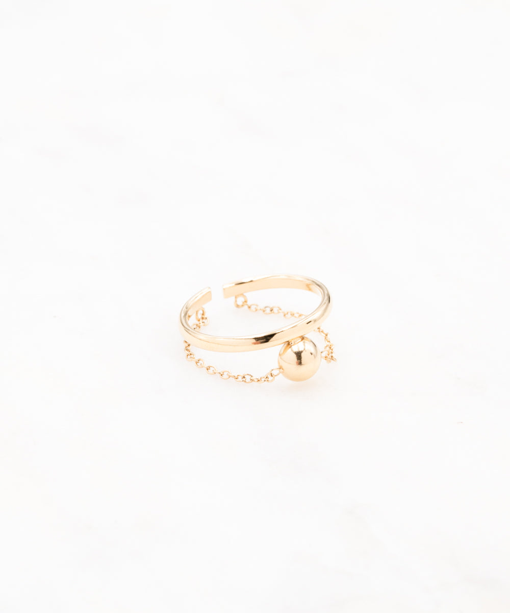 Bague graphique fine ajustable effet 2 rangs composée d'une chaîne avec une pièce centrale ronde.