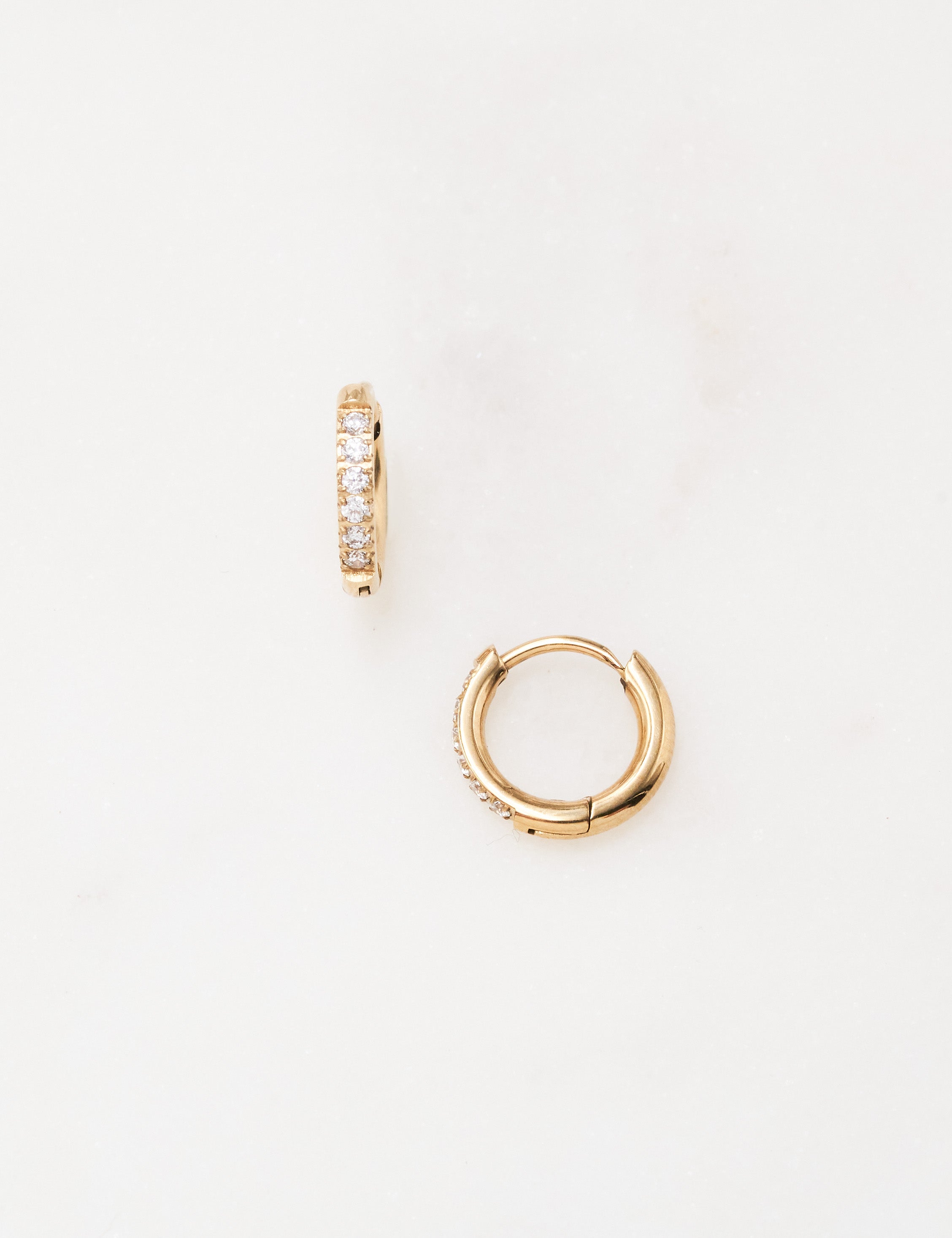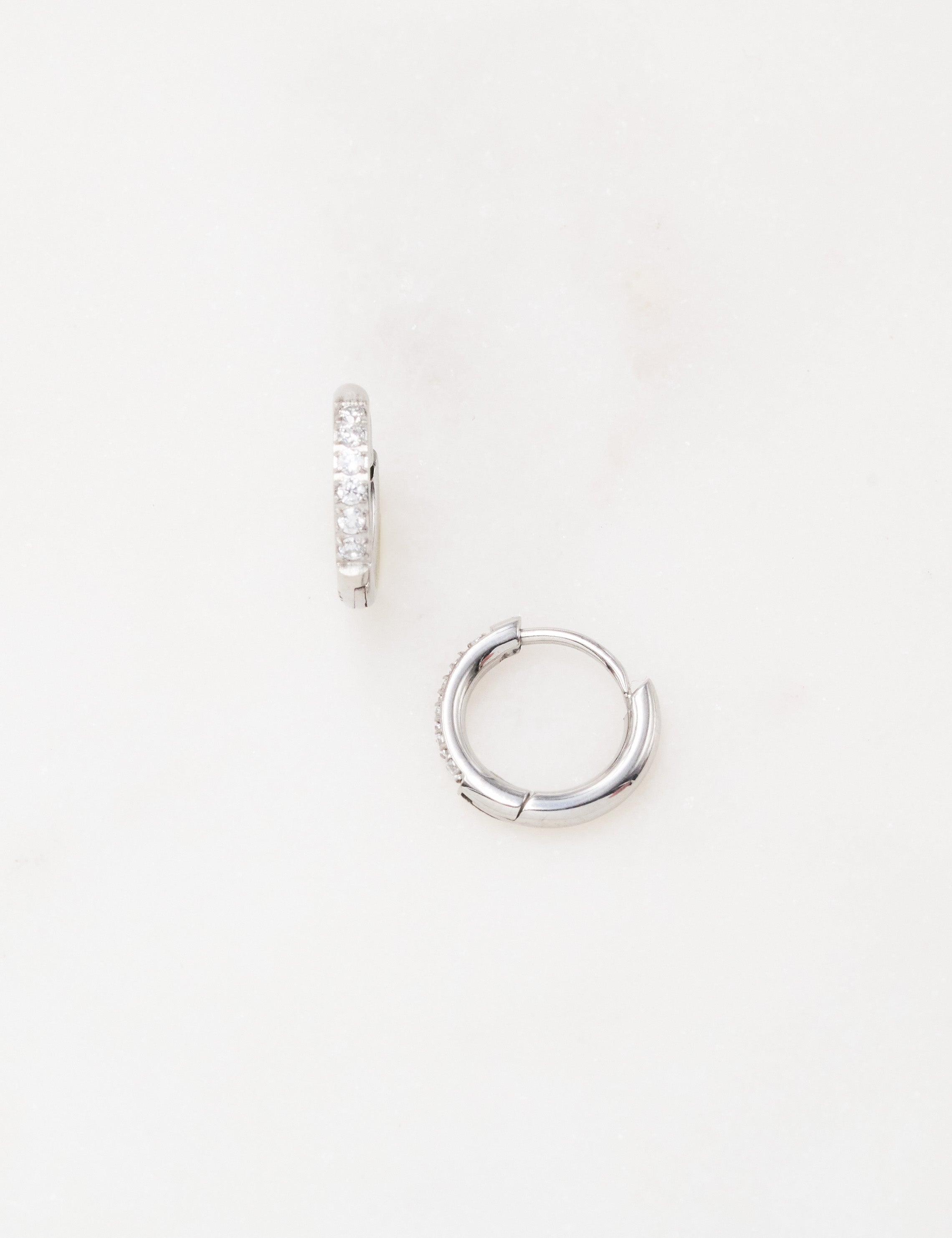 Boucles d'oreilles type créoles composées de strass. Fermoir charnière.