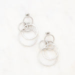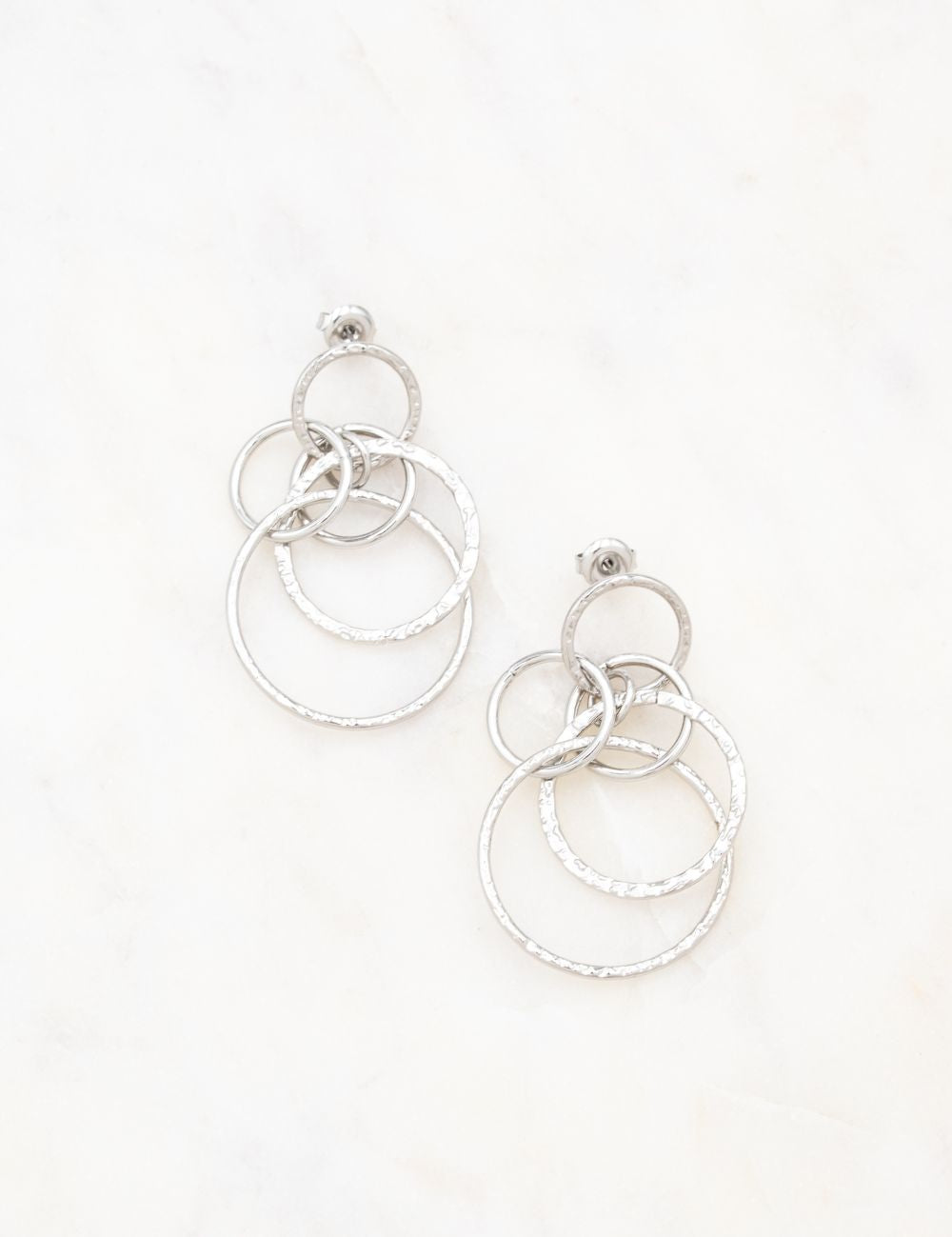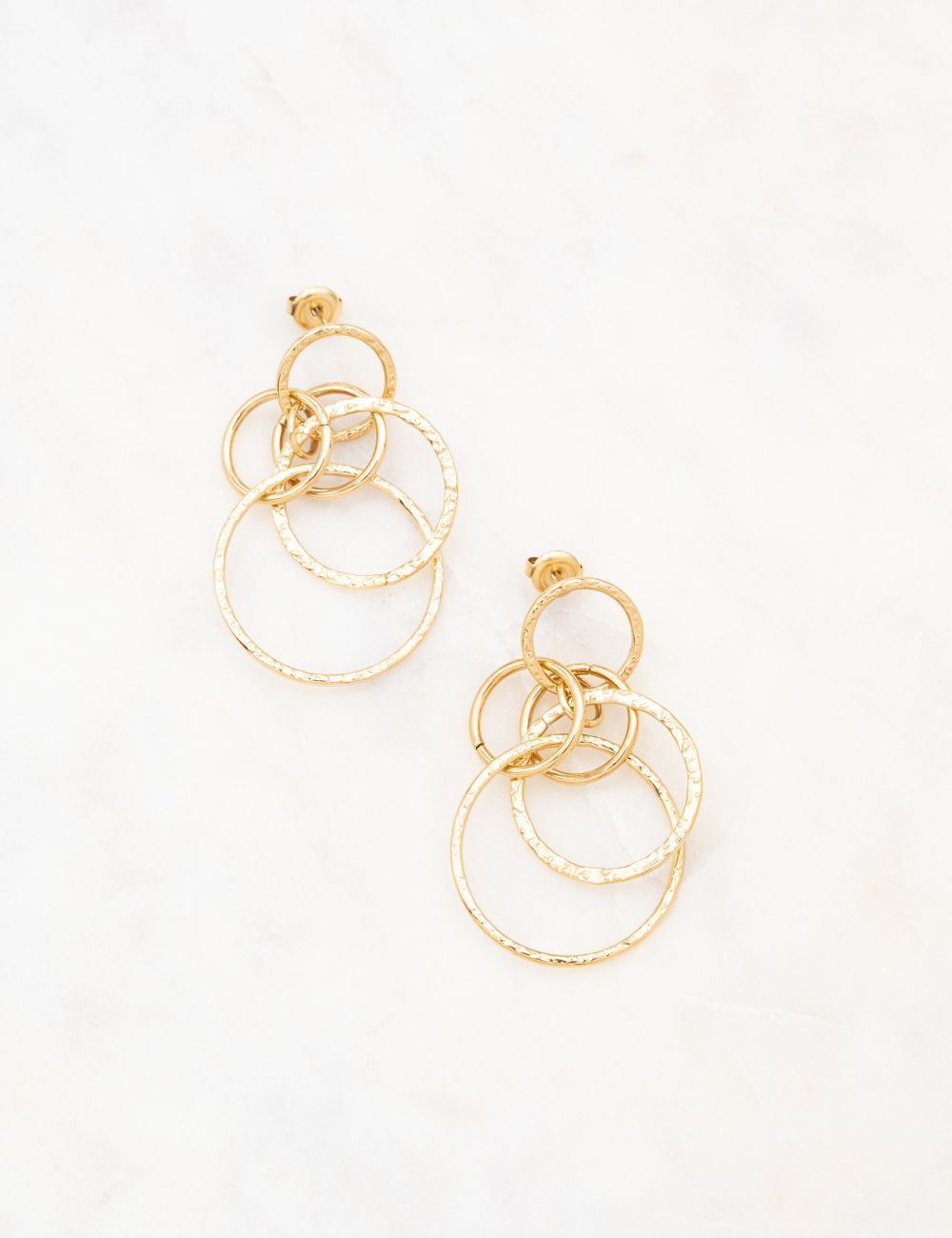 Boucles d'oreilles à puce composées d'un jeu d'anneaux martelés et d'anneaux lisses.