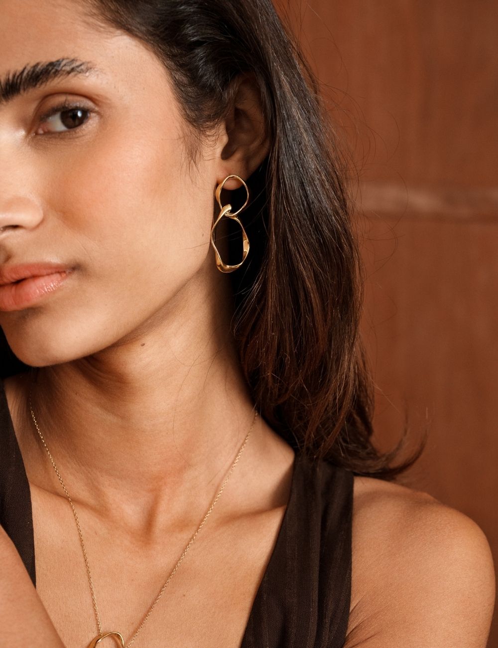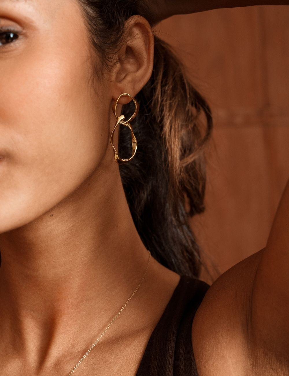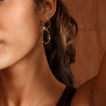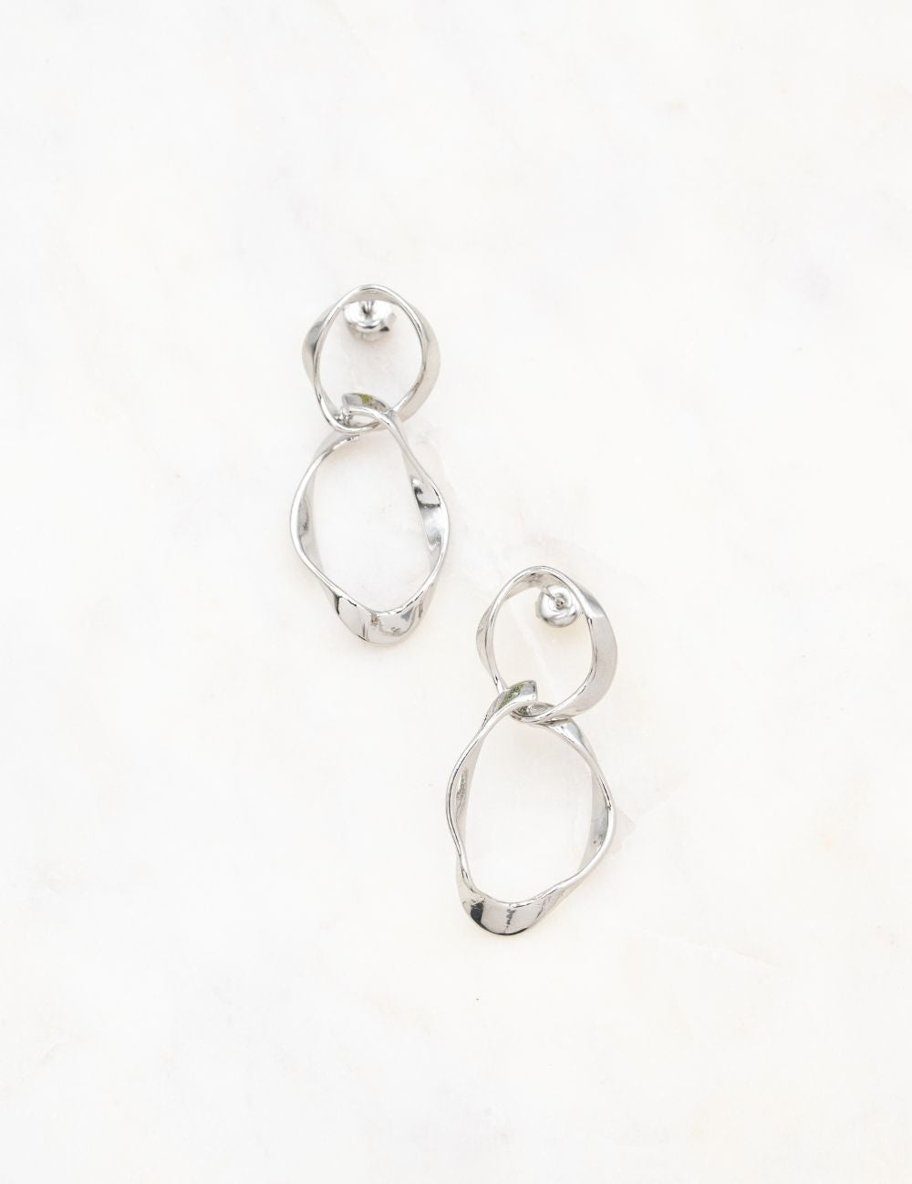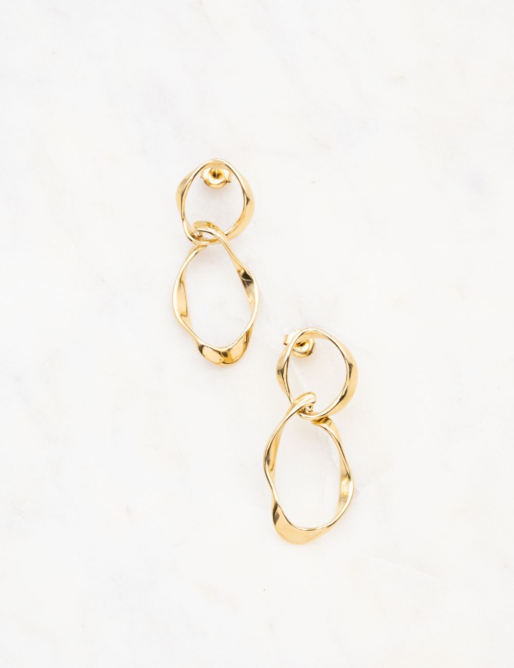 Boucles d'oreilles à puce composées de double anneaux géométriques entrelacés.