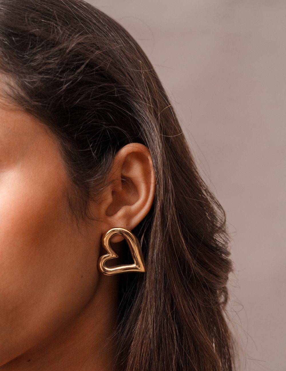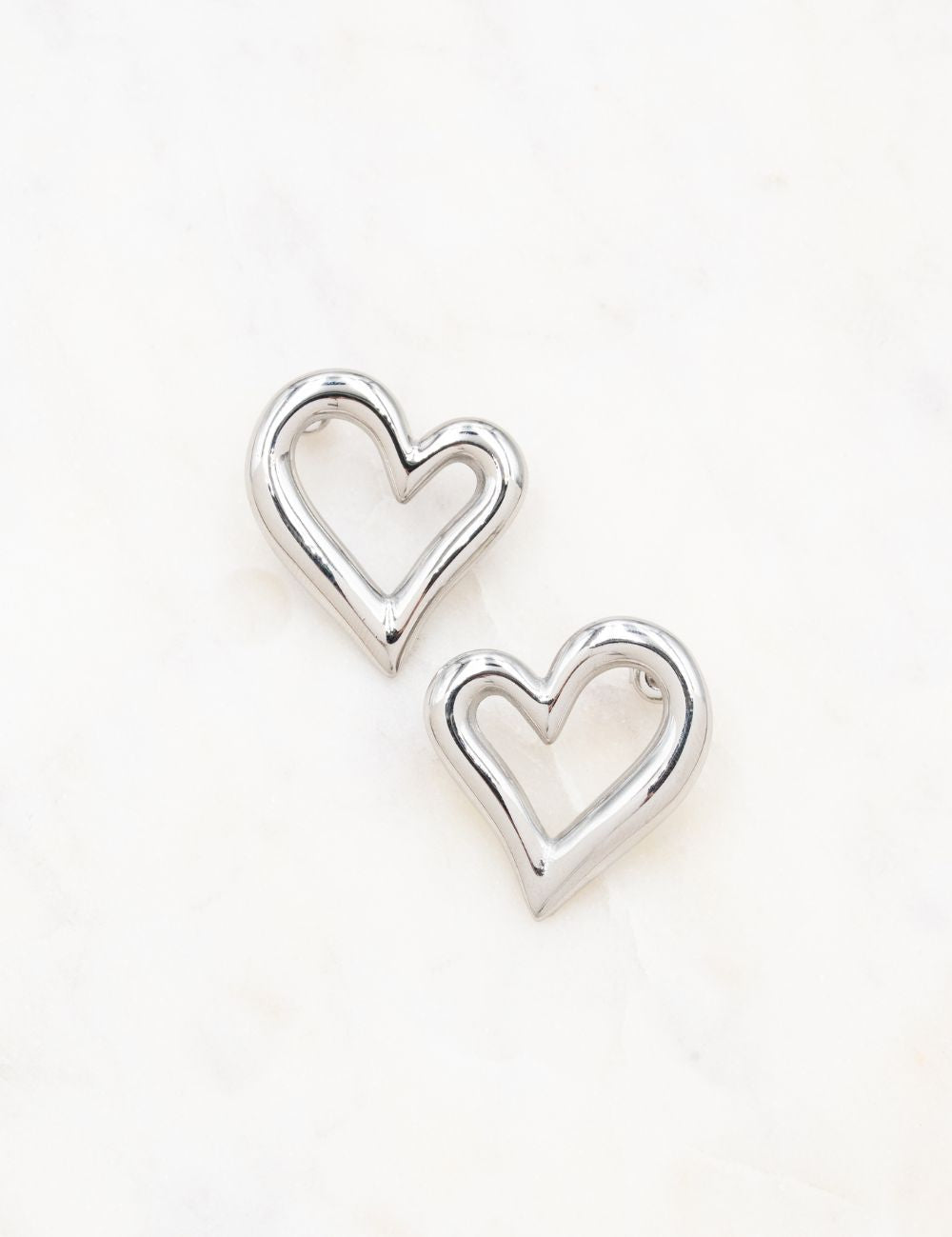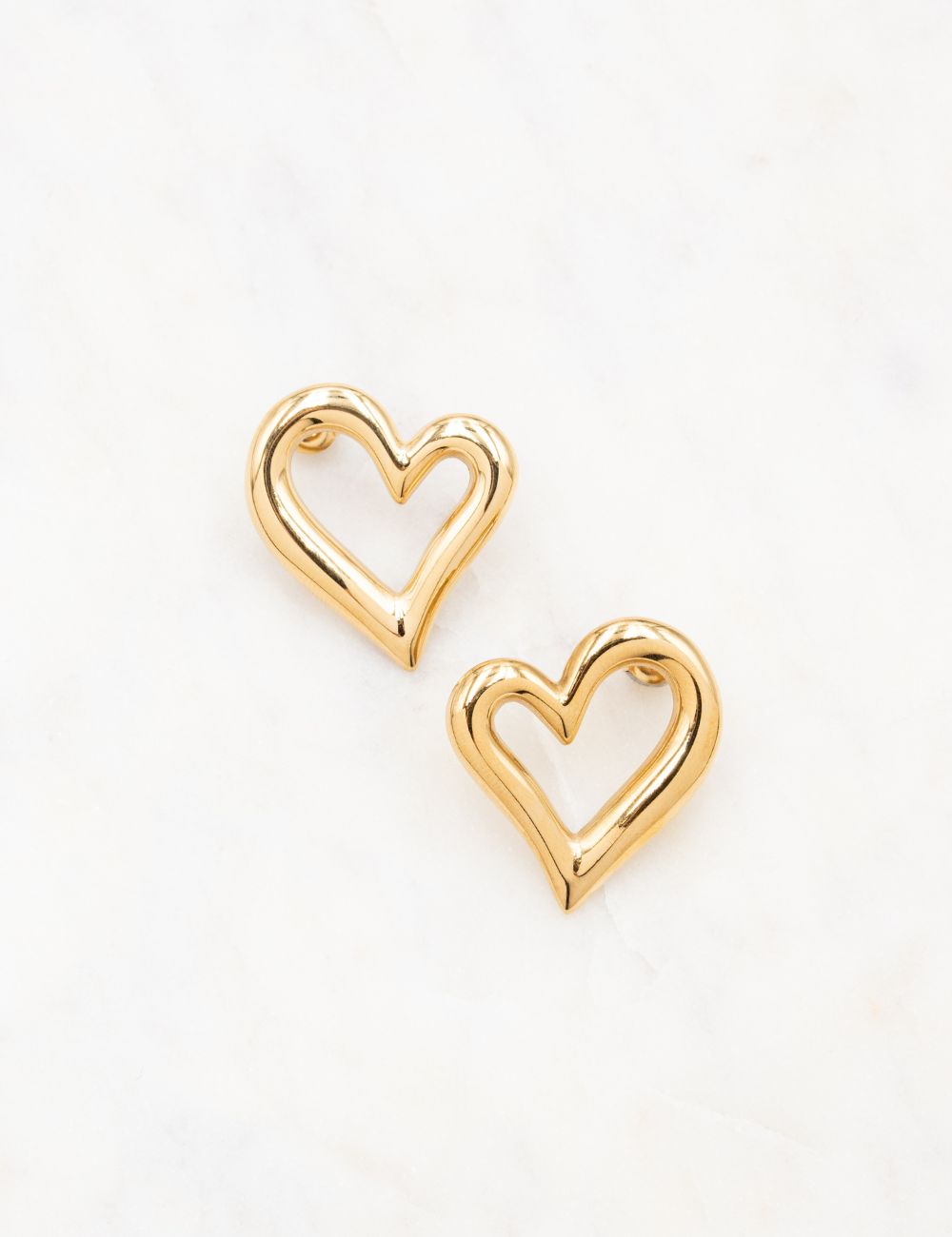 Boucles d'oreilles graphiques à puce composées d'une pièce formant un cœur ajouré lisse, effet miroir.