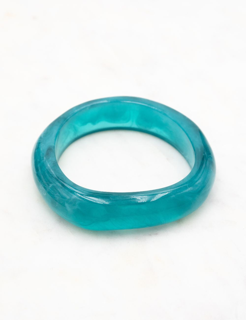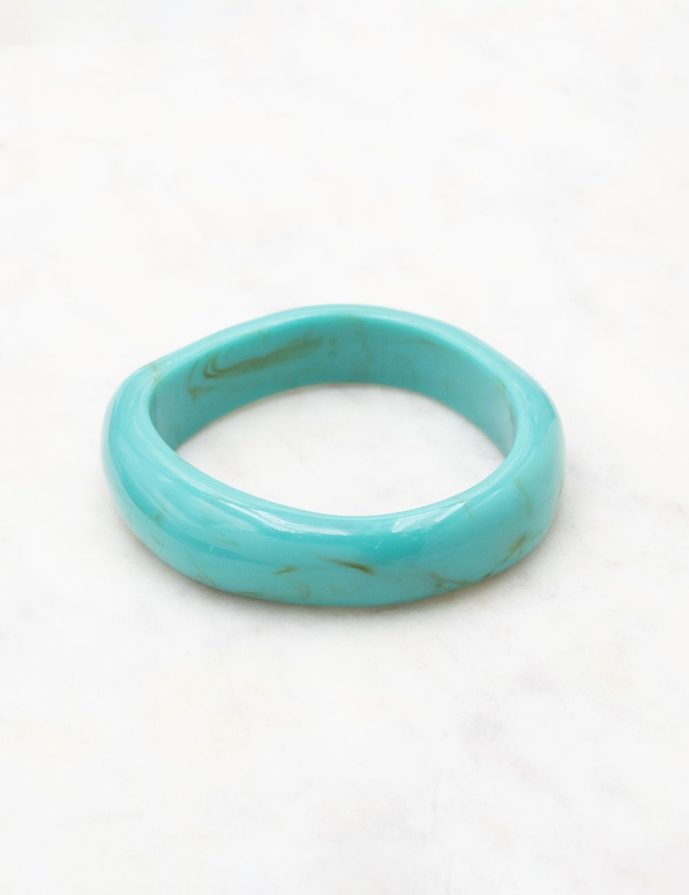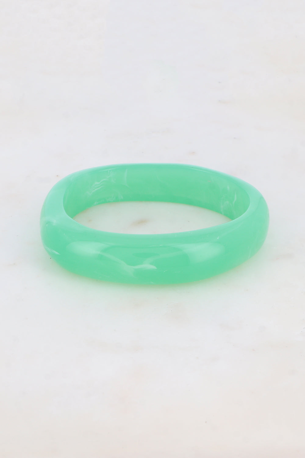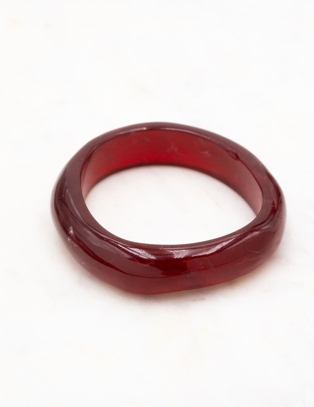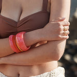 Bracelet type jonc fermé (non réglable) en résine colorée.