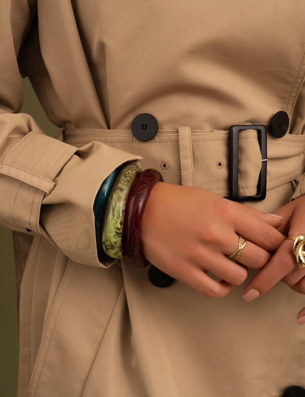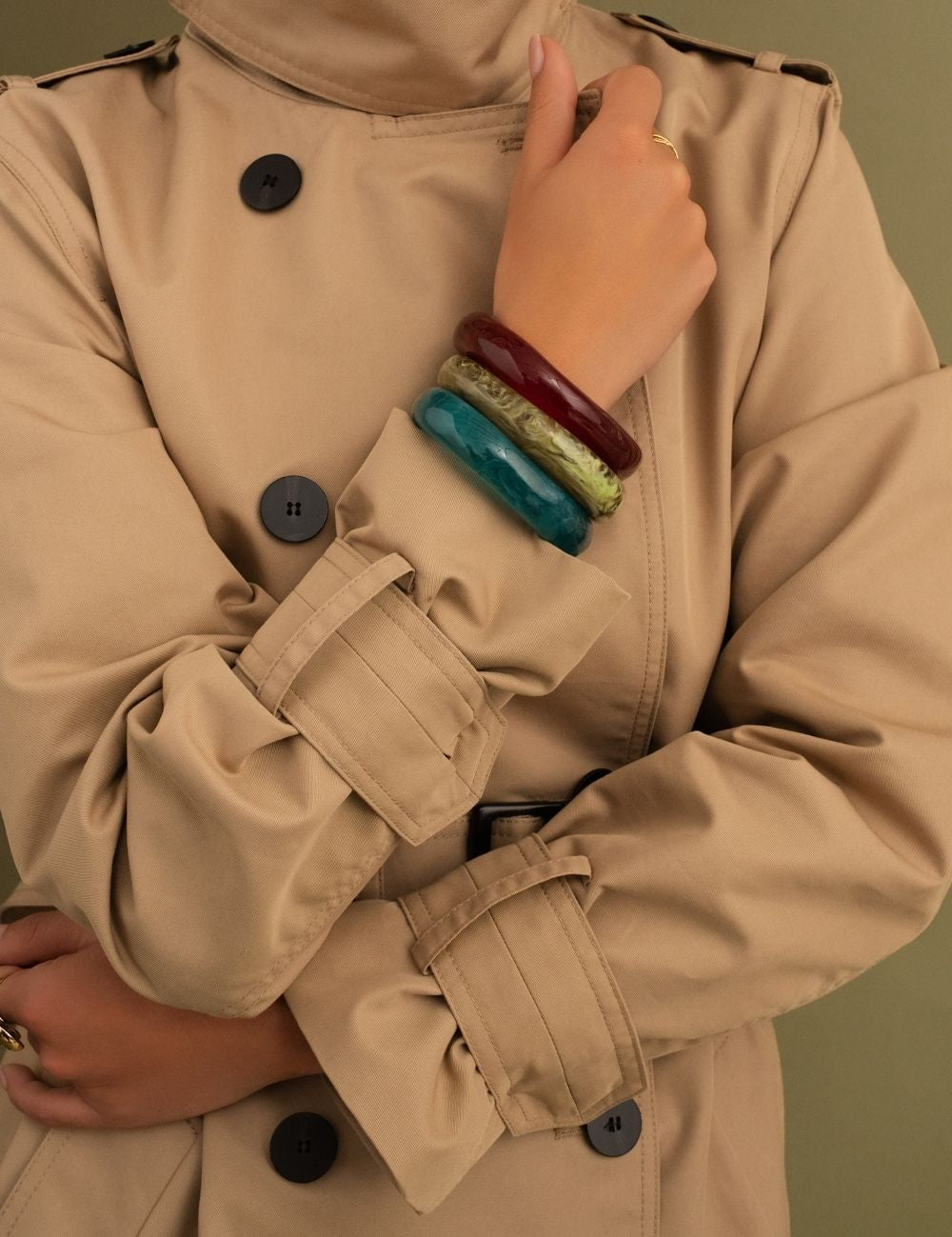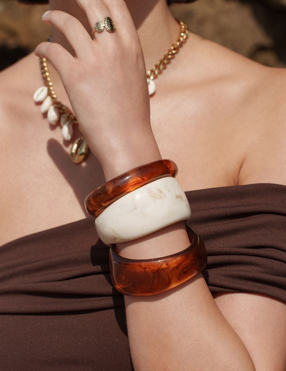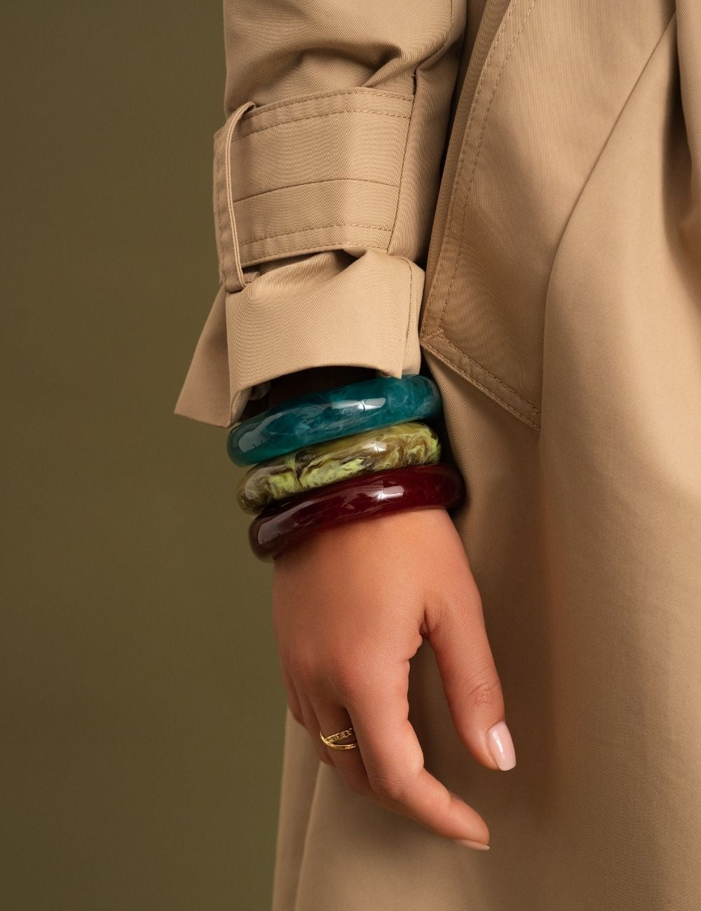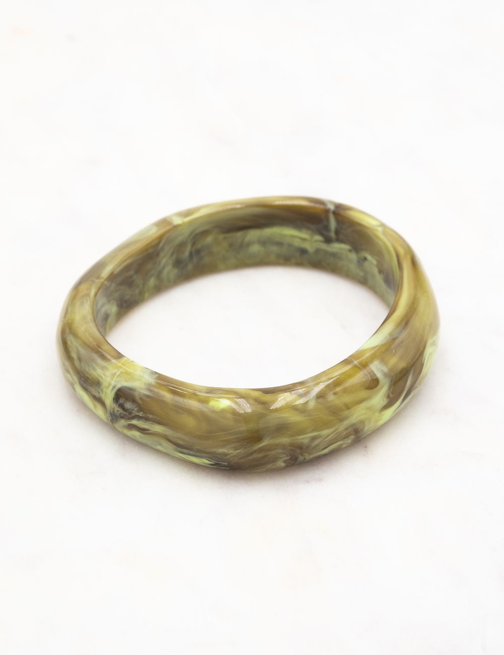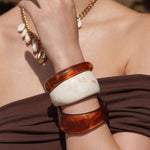 Notes : le bracelet n'est pas malléable (Design rigide, Sans fermeture). Les couleurs en acétate diffèrent d'une pièce à l'autre. Il existe donc des variations de couleur. Les motifs sont aléatoires sur le jonc. Vendu à l'unité.