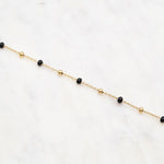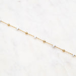 Bracelet sur chaîne composé de petites boules en acier et en émail coloré.
