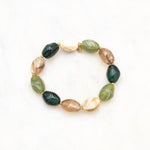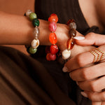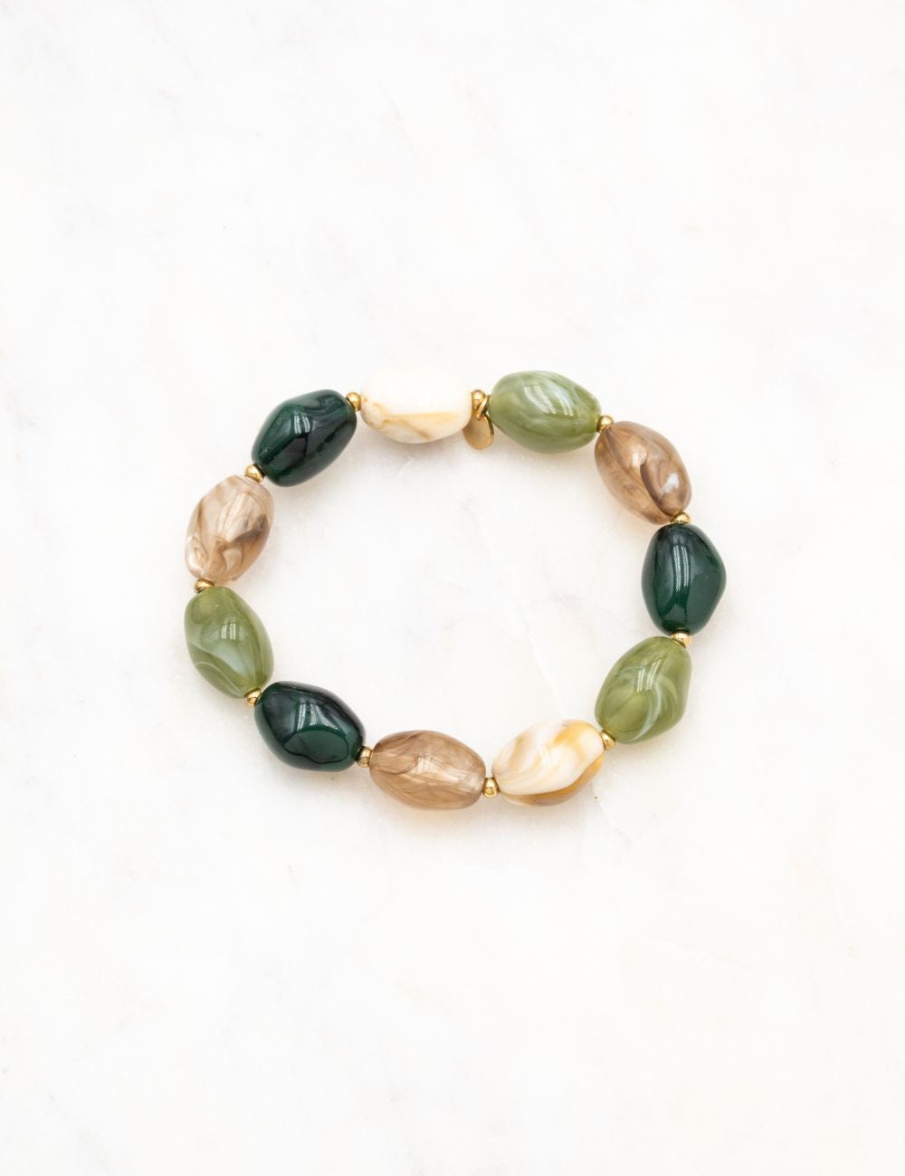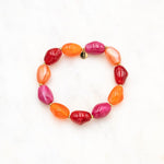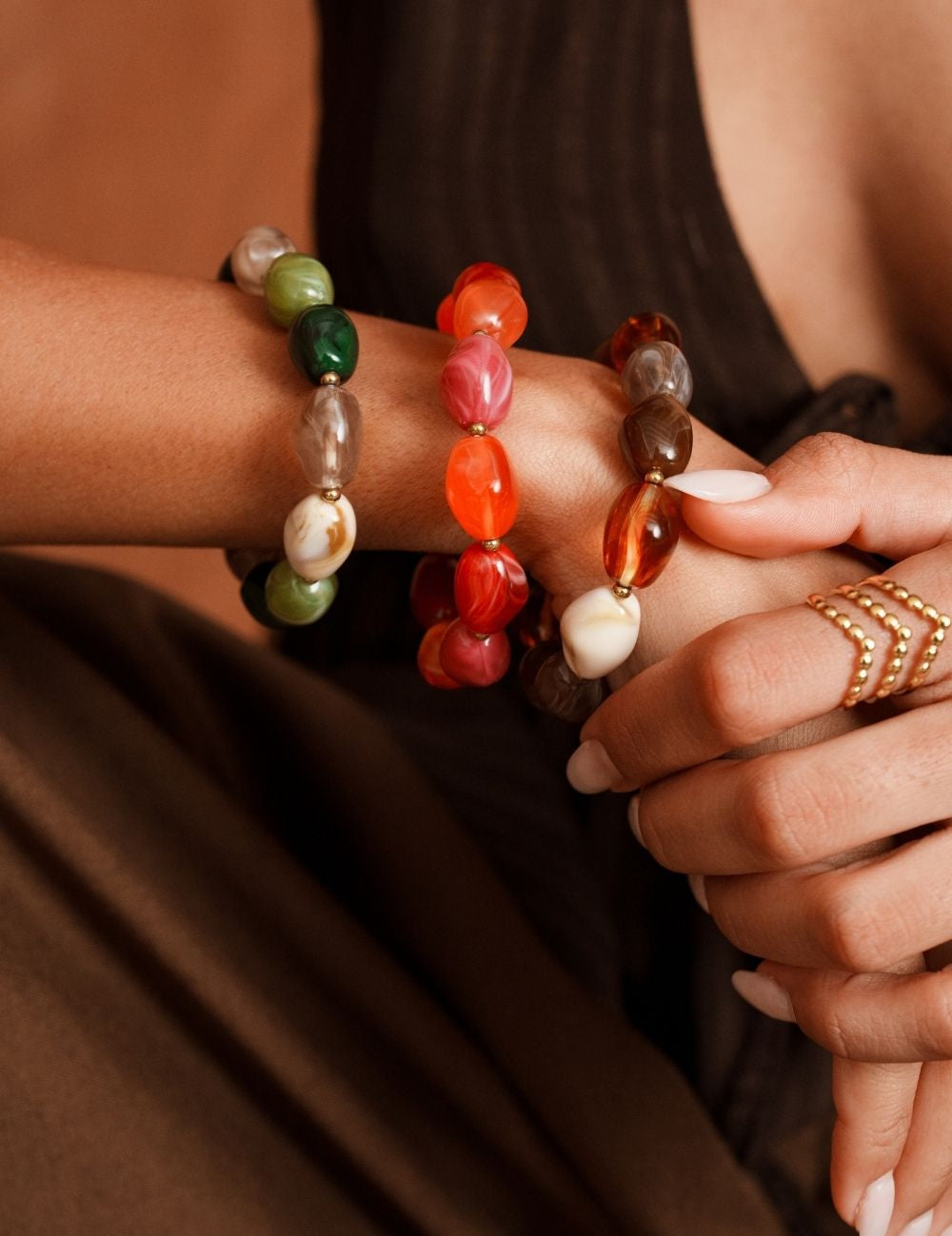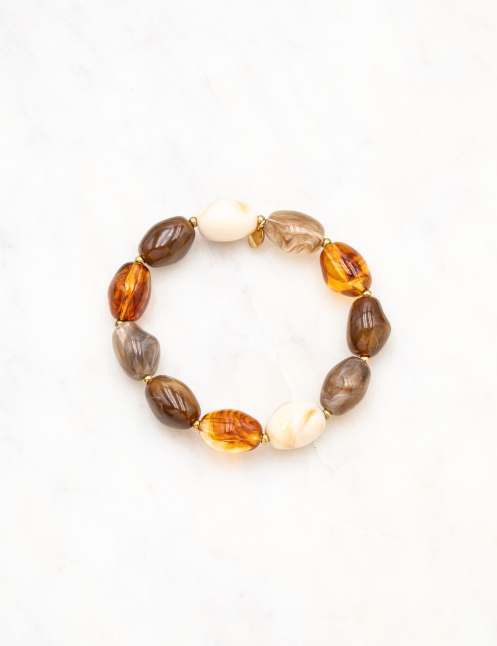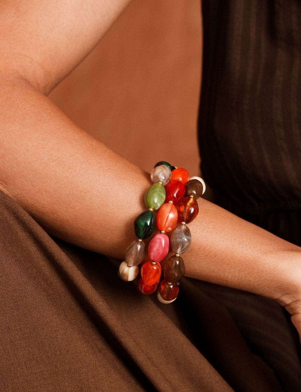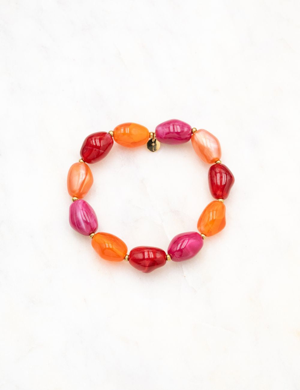Bracelet élastique composé d'un enfilage de perles en résine acétate colorée.