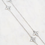Collier type sautoir composé de 4 étoiles ornées de strass.
